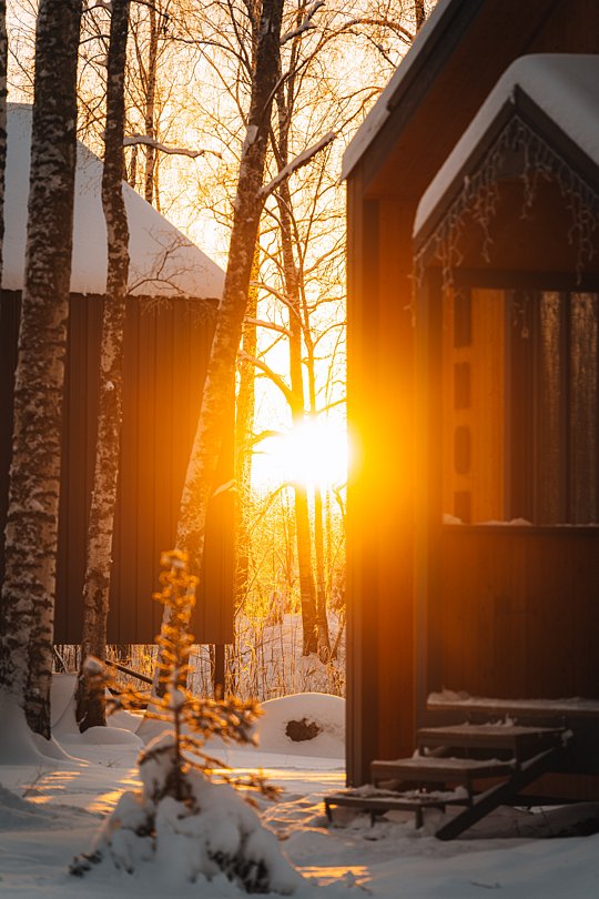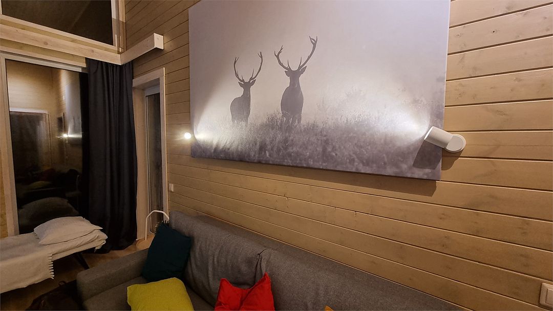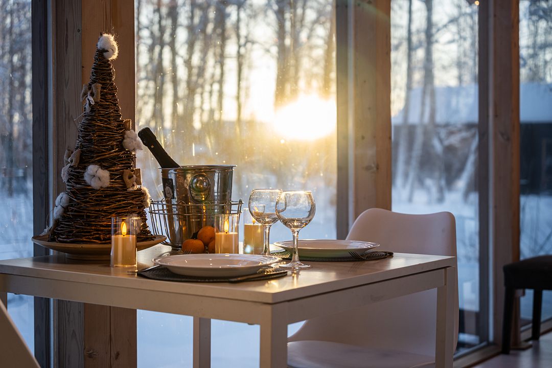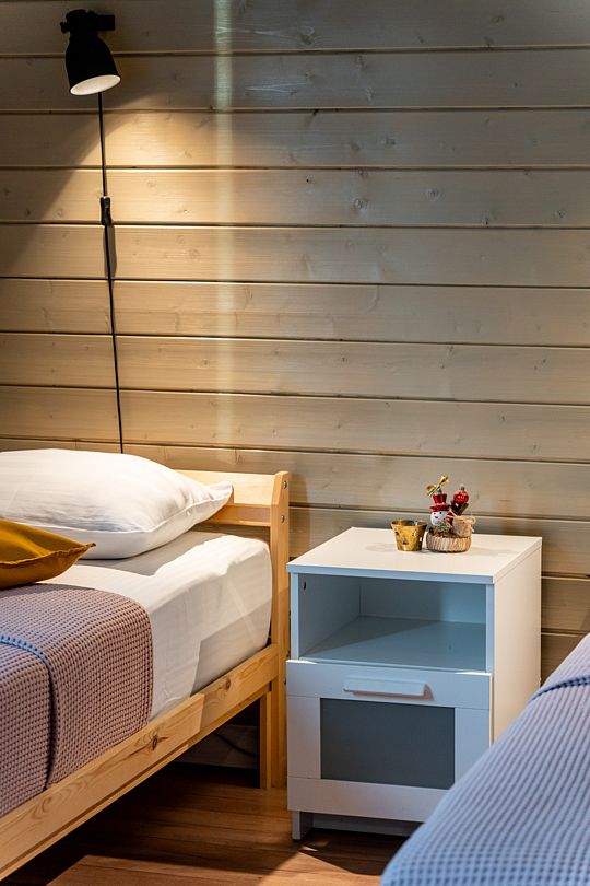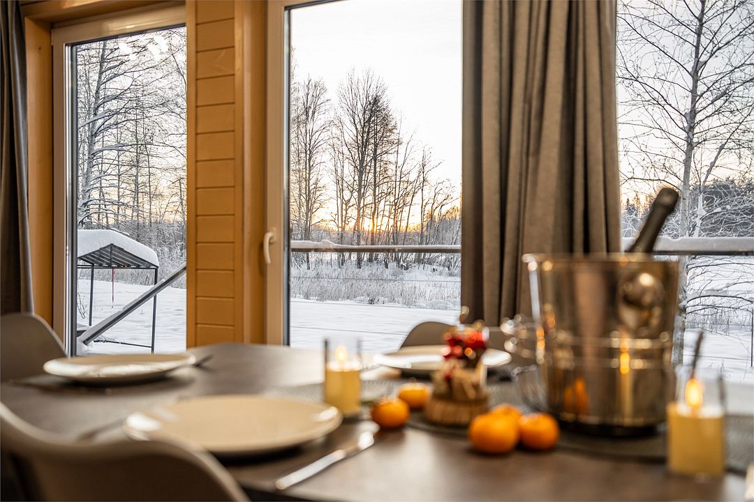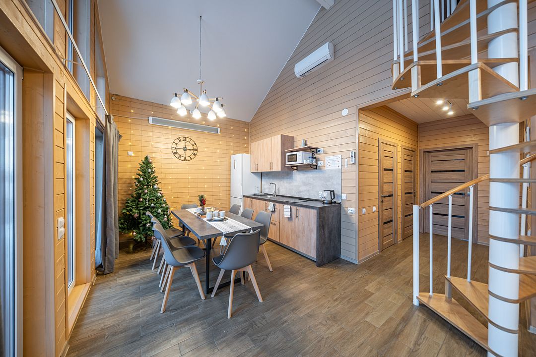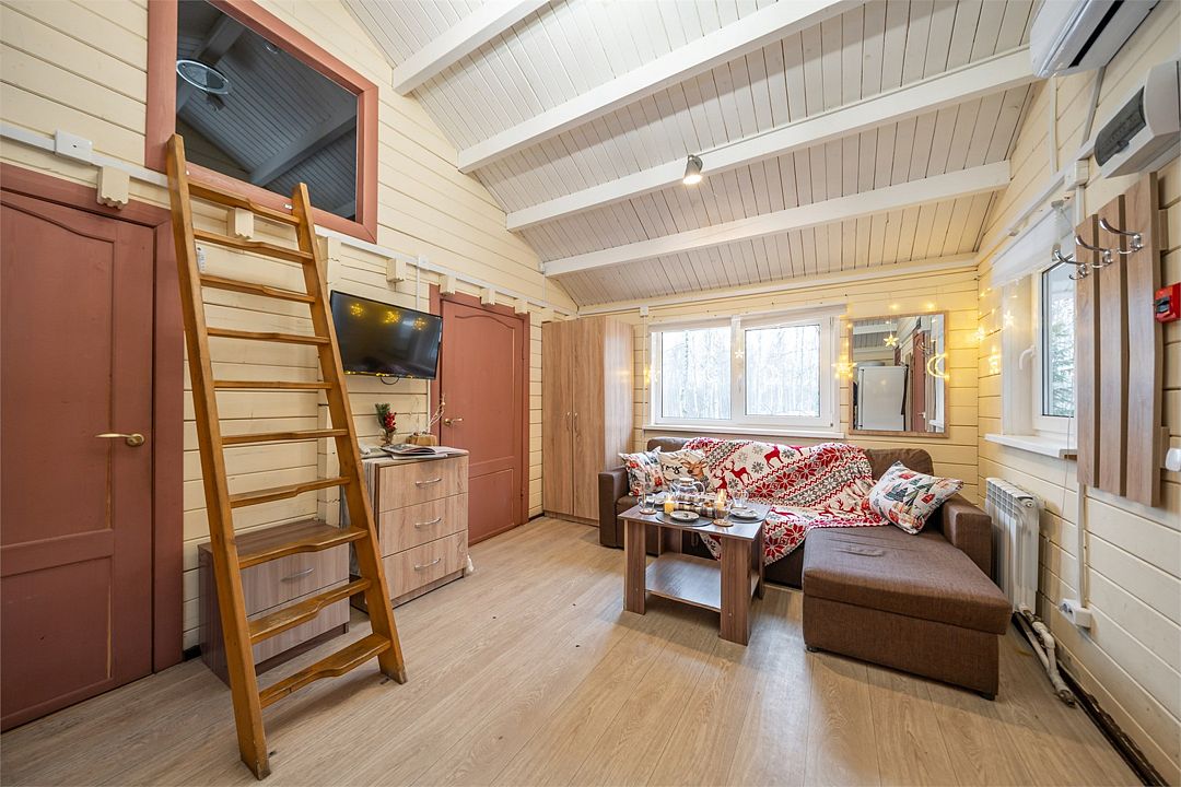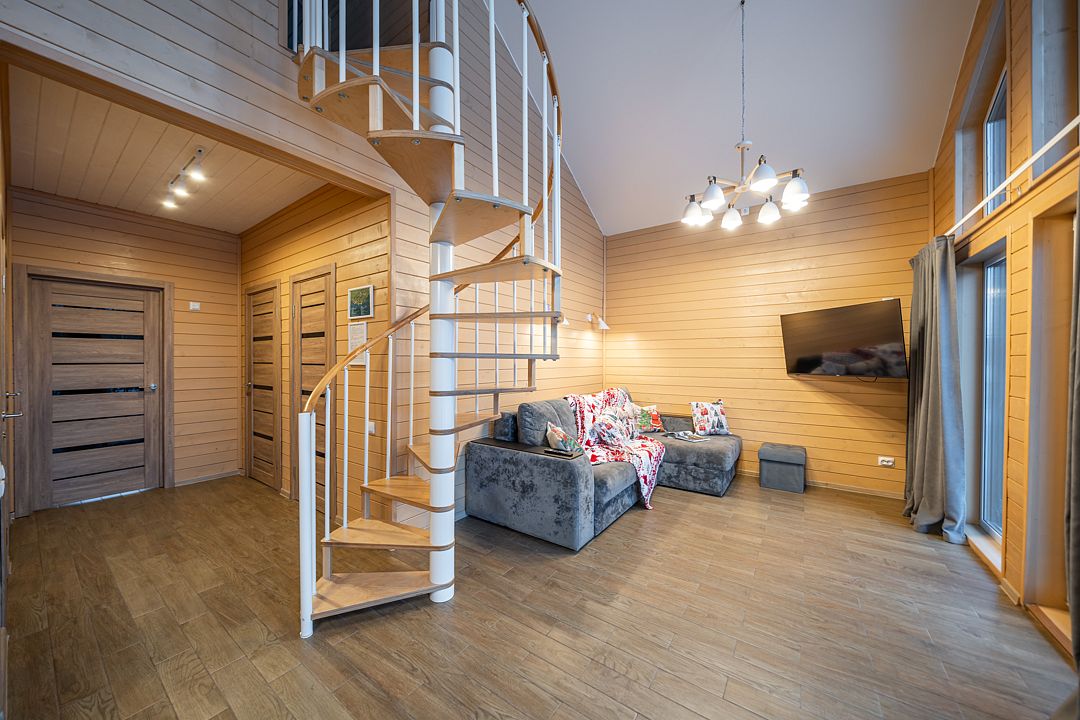 Из окон открывается прекрасный вид на о. Вуокса и лес. В 300 м находится уединенный пляж, где можно половить рыбу, искупаться и насладиться красотой природы Карельского перешейка. В интерьере домика гармонично сочетается простота с натуральными материалами в декоре.