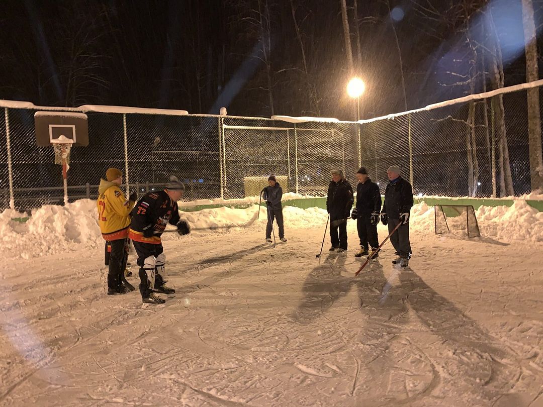 Каток создается в зависимости от сезона: либо на замершем озере, либо на спортивной площадке. По готовности льда всегда можно уточнить у администратора клуба.