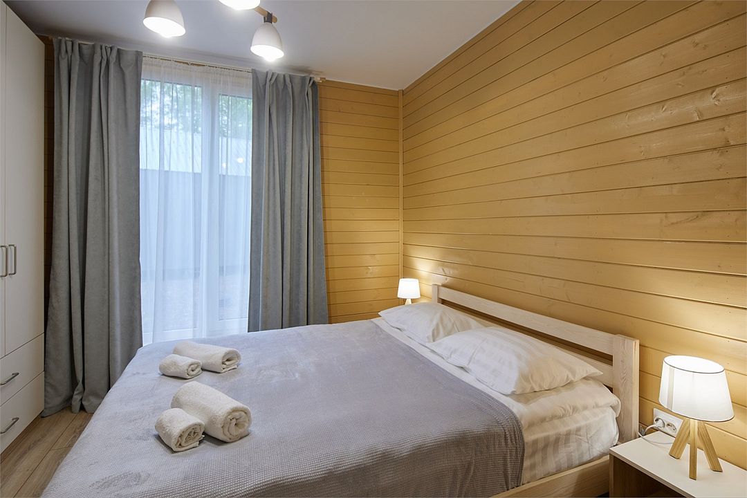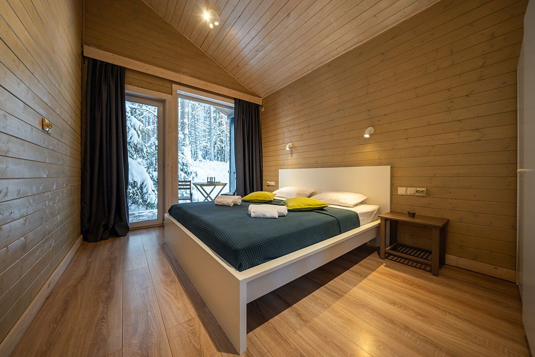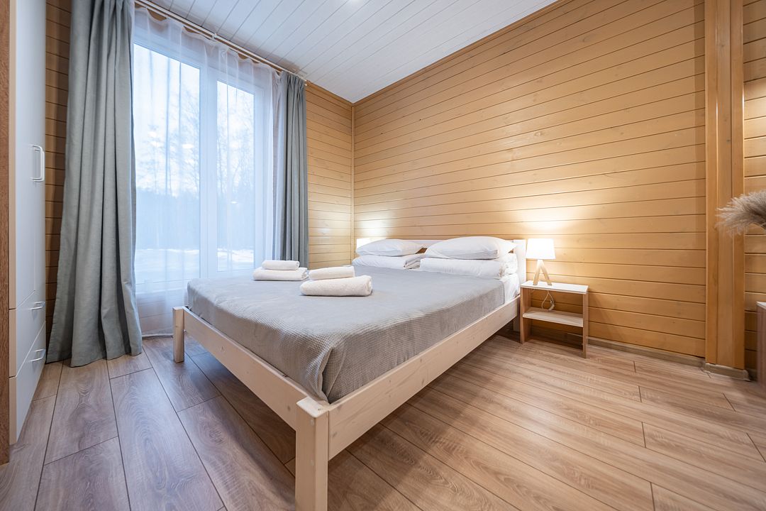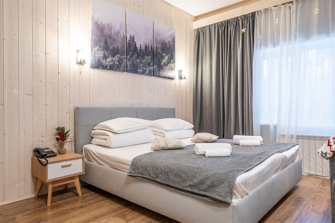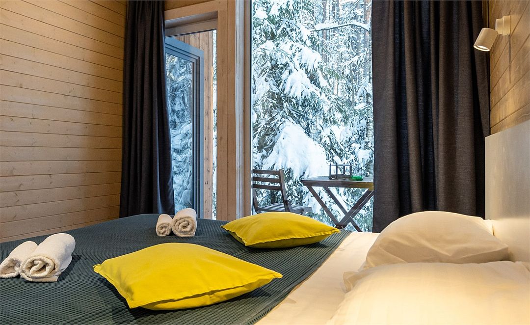 Уютный светлый номер площадью 35 кв. м, с окнами на внутренний дворик или с видом на лес, в котором одинаково комфортно может разместиться 2 взрослых или семья с детьми.