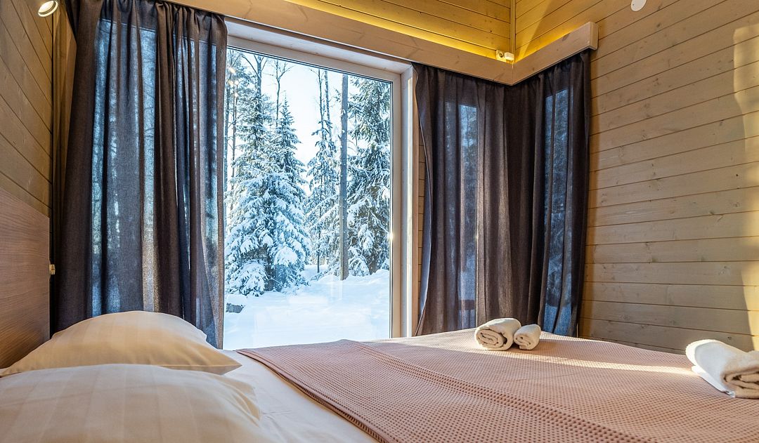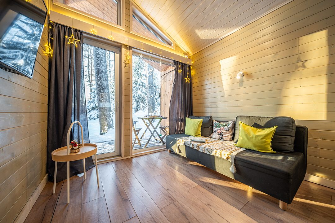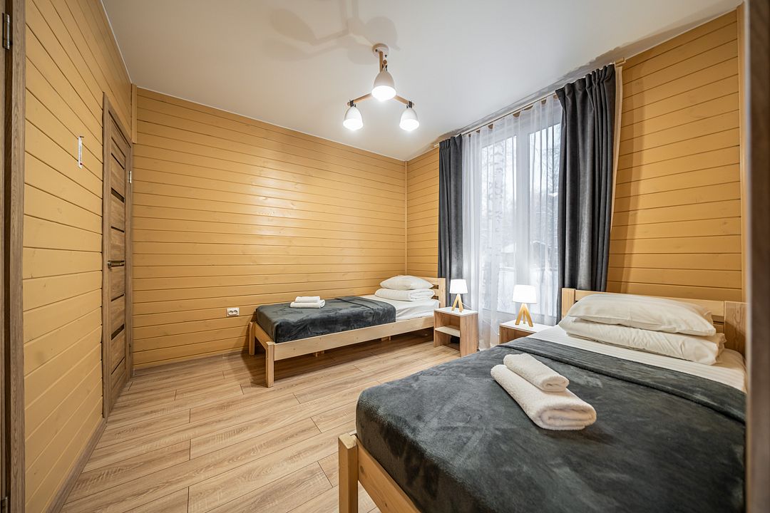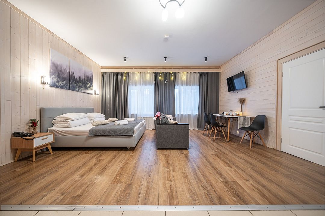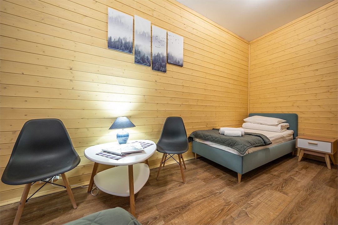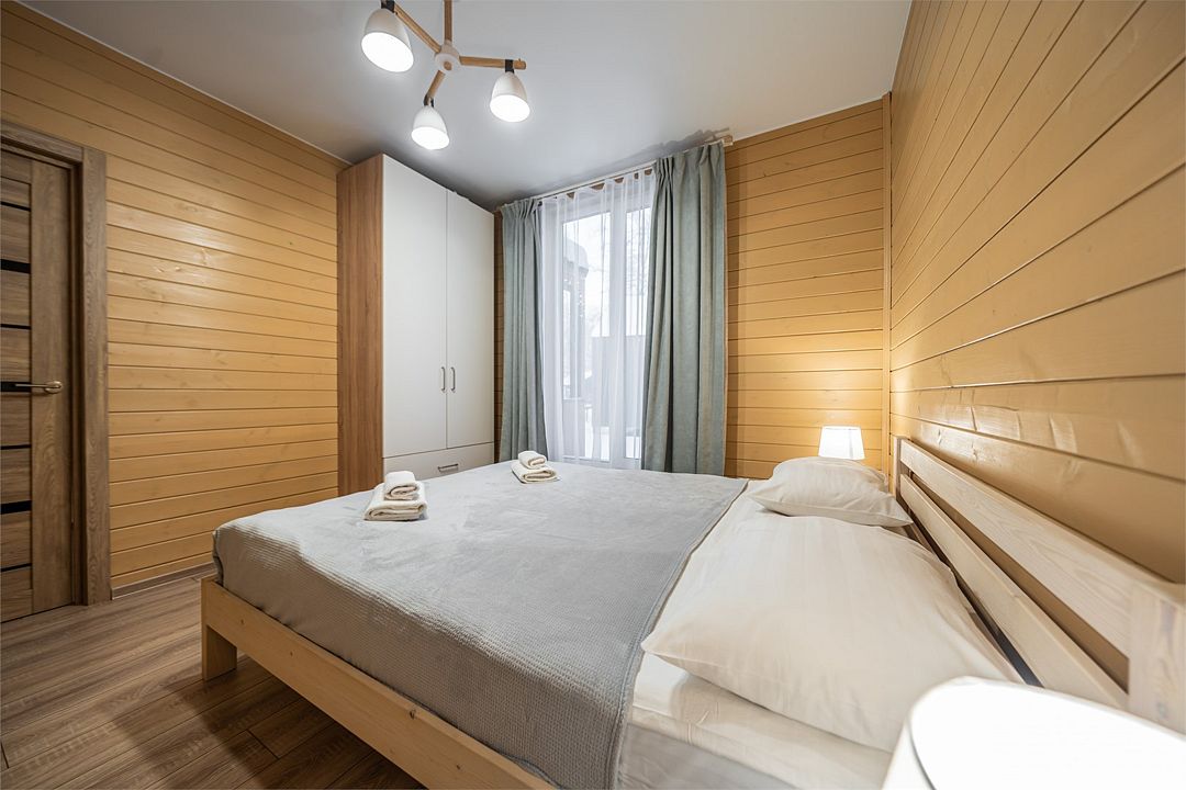 Уютный светлый номер площадью 35 кв. м, с окнами на внутренний дворик или с видом на лес, в котором одинаково комфортно может разместиться 2 взрослых или семья с детьми.