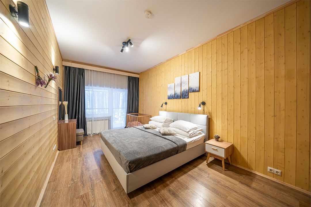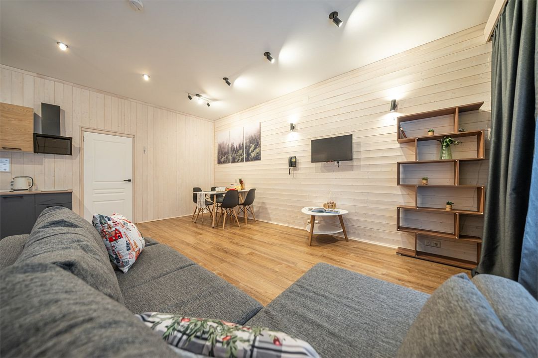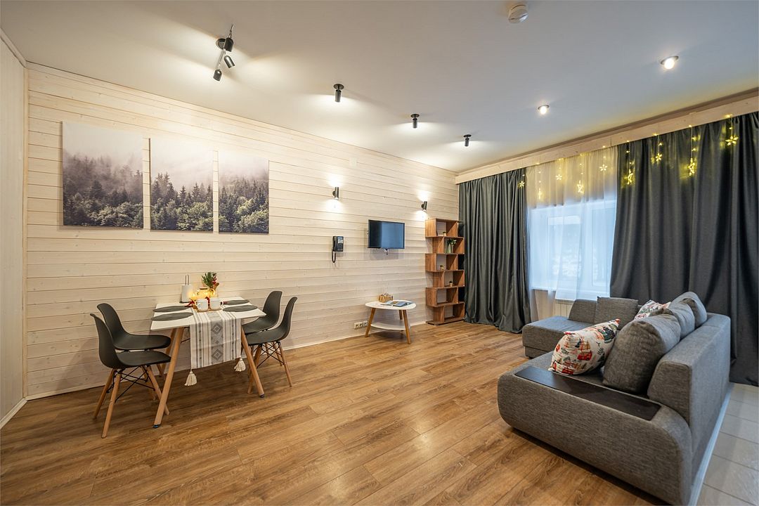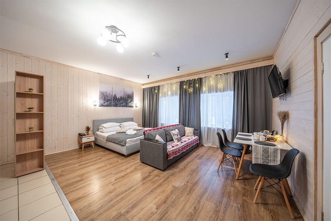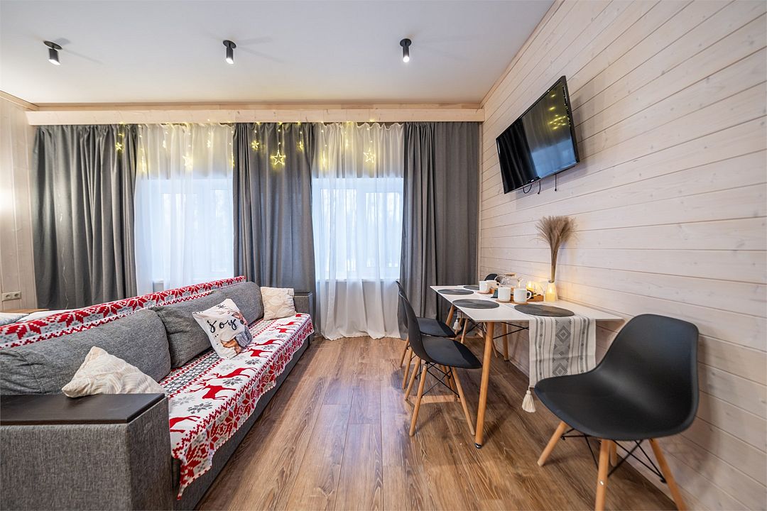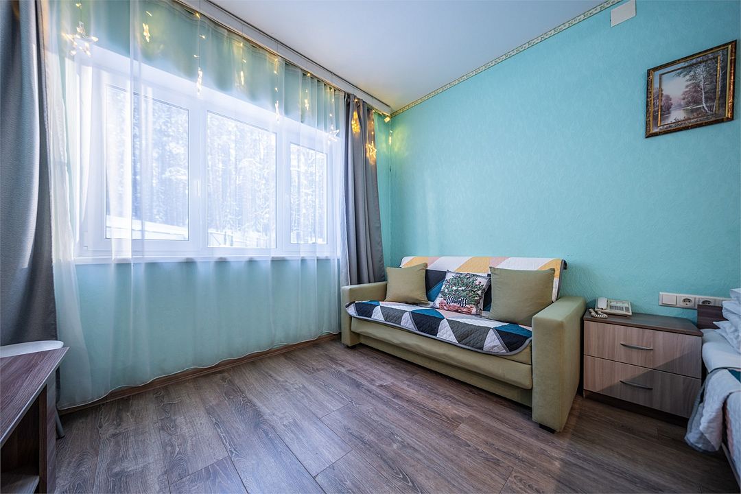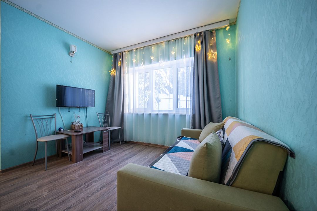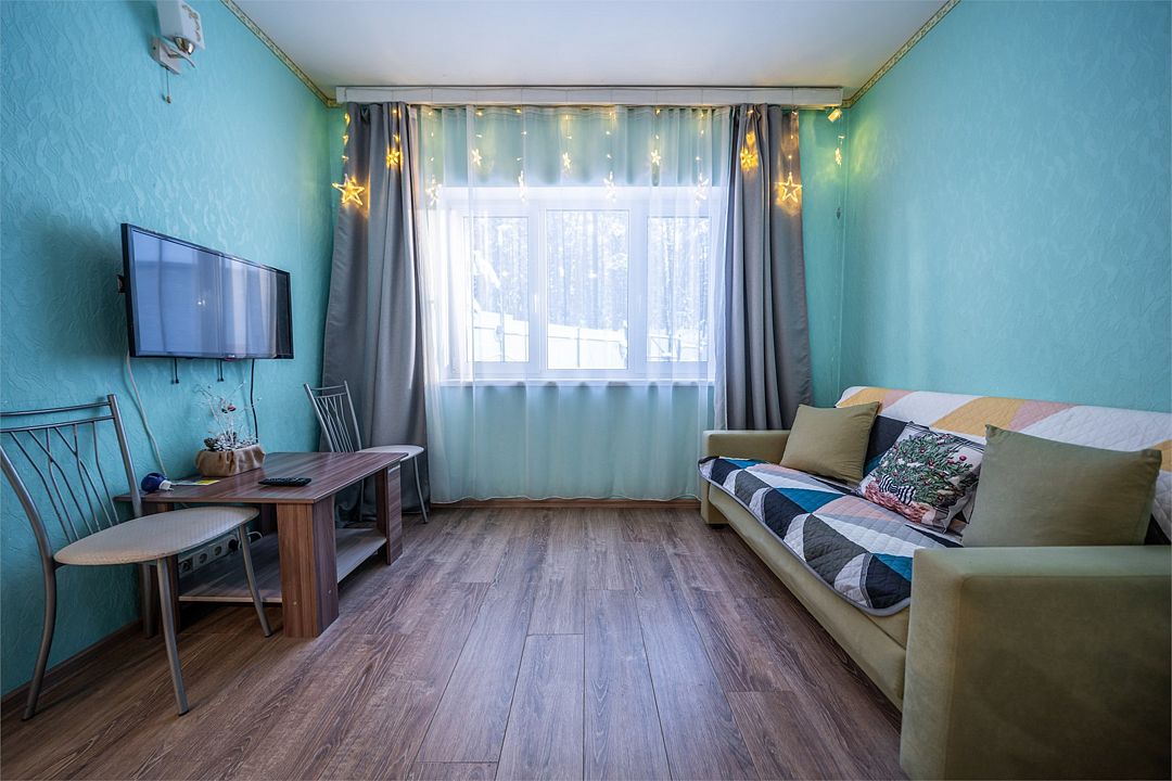 АП207: Просторные двухкомнатные апартаменты с ремонтом (60м2), балконом, видом на лес 207 гостинная с раскладным диваном, спальня с двухспальной кроватью