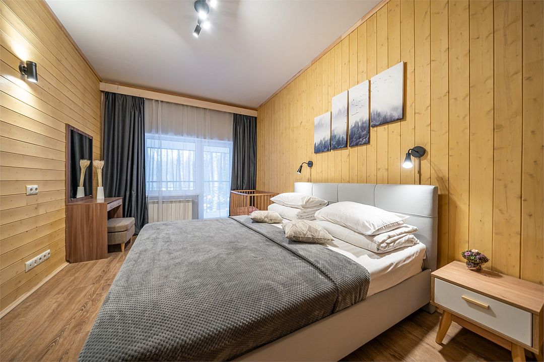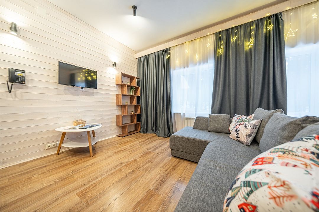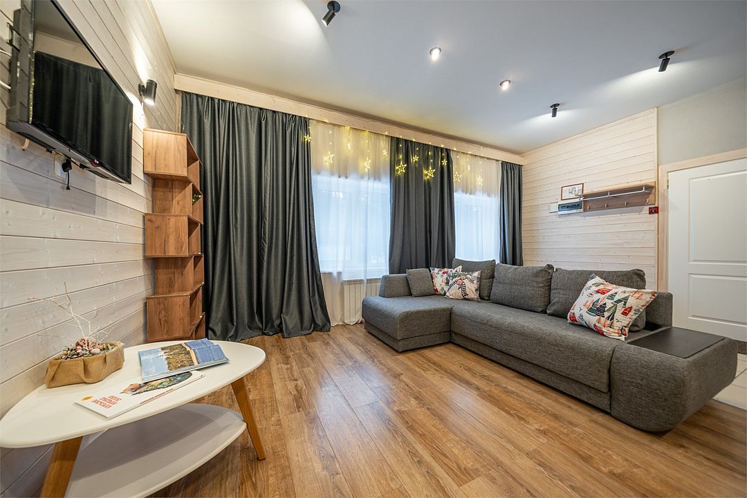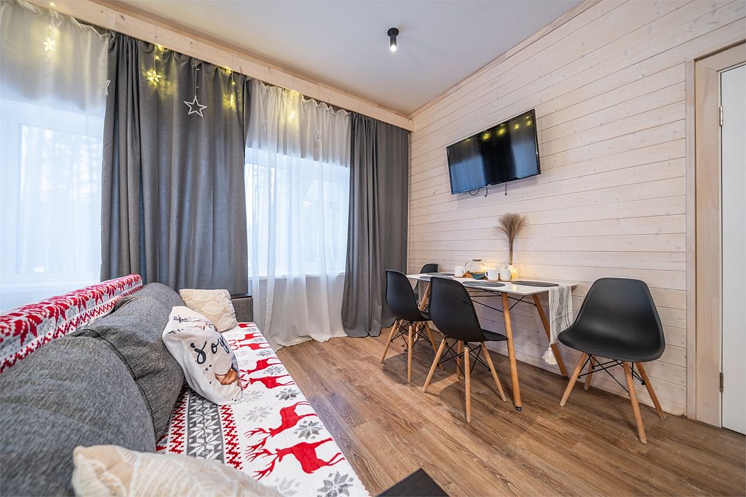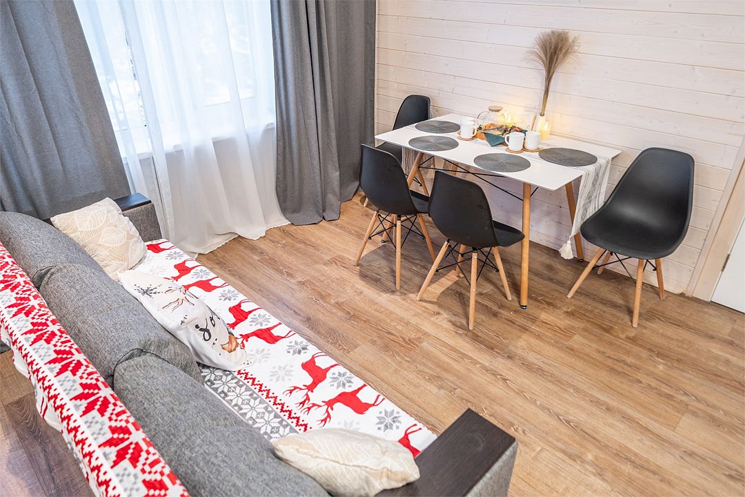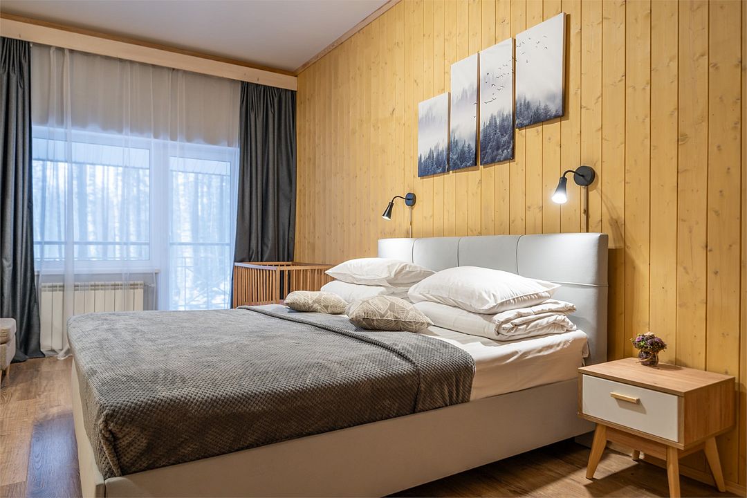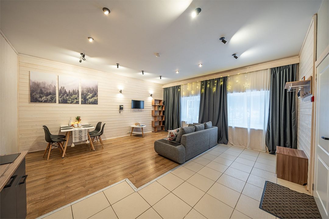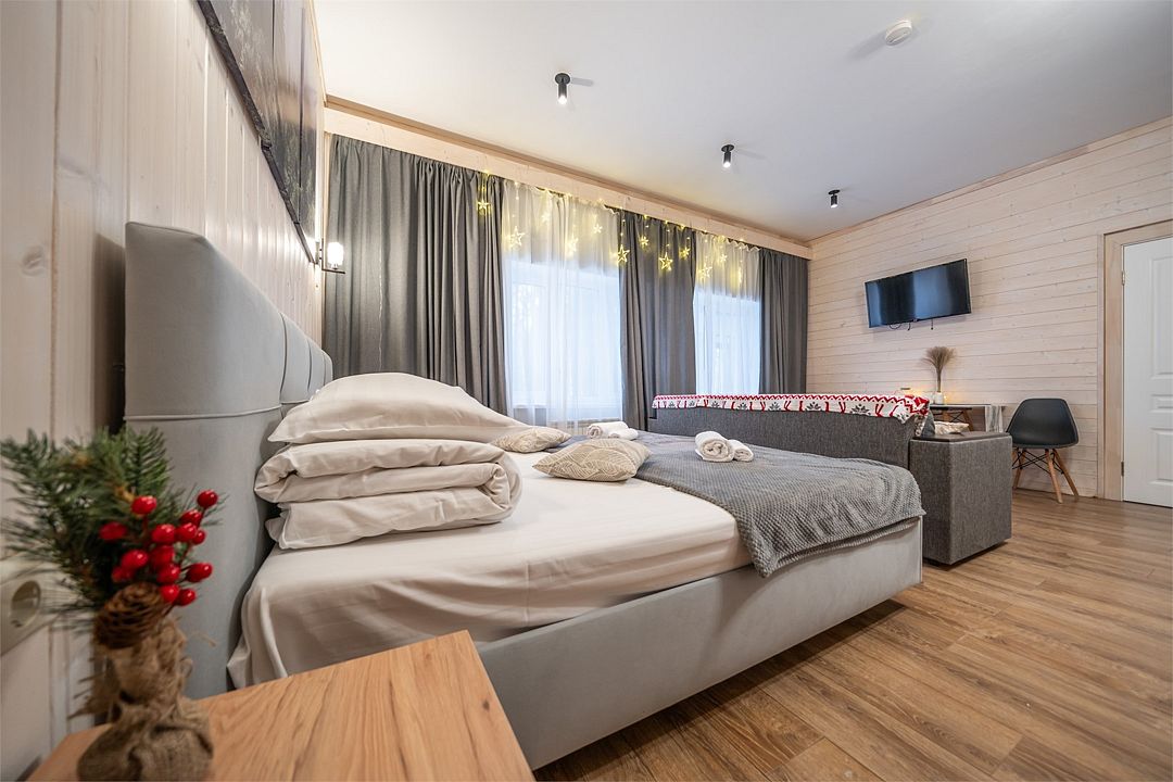 АП207: Просторные двухкомнатные апартаменты с ремонтом (60м2), балконом, видом на лес 207 гостинная с раскладным диваном, спальня с двухспальной кроватью