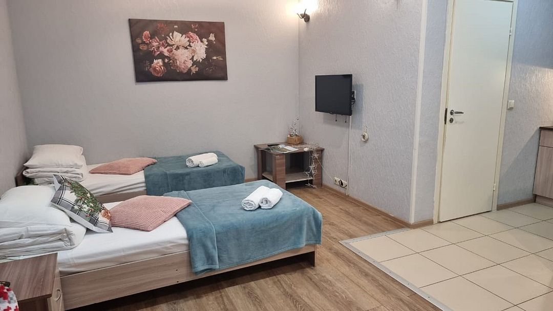 АП208: Апартаменты с ремонтом 208 2-комнатный 1 двухспальная +2 односпальные кровати + диван