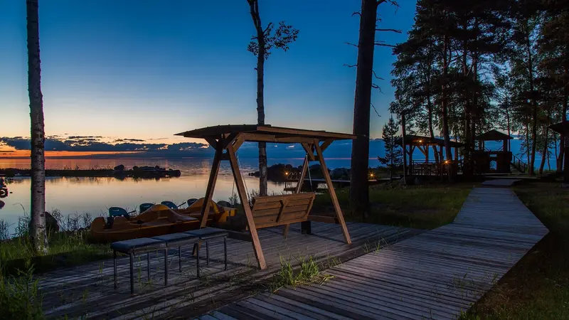 Путешествие с семьейЗамечательная Самая Ладога.Отдыхали на базе с 03 - 15 июля. Семья из трех человек. Занимали коттедж Домик у озера. Понравилось всё, нет никаких нареканий. Великолепно. Настолько всё грамотно продумано, комфорт во всем. Уютный дом, ухоженная территория, чистота и уют. Никаких гнутых сковородок, отбитых тарелок и дешёвых кастрюль. Для нас посуда имела большое значение, так как ребёнок на индивидуальном питании. Я привезла с собой много посуды (в итоге она осталась в машине). Всё очень качественно. Бельё как новое, всё из Икеа, поэтому качество хорошее,выглаженное, накрахмаленое. Полотенца огромные, белые, пушистые (опять же набрали с собой - не понадобилось.) Холодильник, микроволновка сияют чистотой, как будто до нас никто не пользовался. О комфорте можно говорить бесконечно, но..... Главное - это Ладога. Домик практически стоит у воды. Засыпаешь и просыпаешься под звук волн. Они всегда, и в хорошую, и в ненастную погоду. Мангальные зоны, добротные, сами мангалы кованные, мощные. Там и раковина, и столы, гранитные доски, средства для мытья посуды, губки, щётки, тряпочки, при чём всё новое, для каждого нового гостя всё ставят новое. В общем, говорить можно долго. Рекомендую на все 1000%.