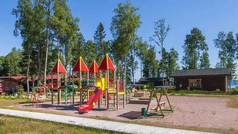 База отдыха «Самая Ладога» – это база семейного отдыха! Поэтому для маленьких гостей на базе есть 2 детские площадки: одна для малышей, другая для детей более старшего возраста. Песочницы, качели, горки и свежий лесной воздух – что еще нужно малышам для хорошего настроения и крепкого сна!