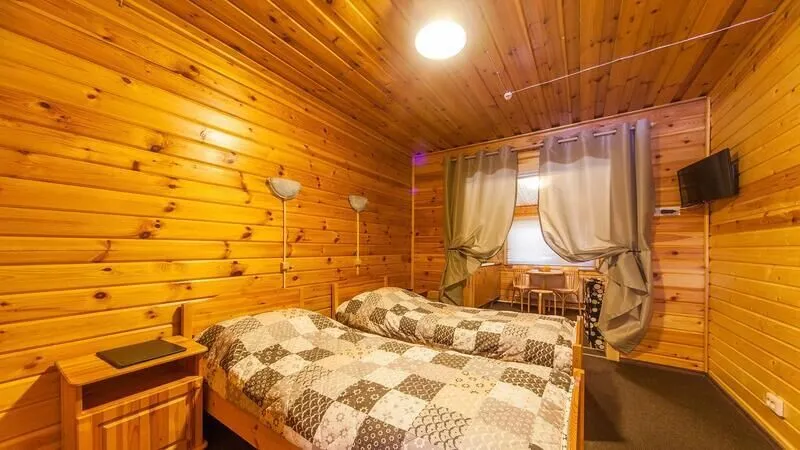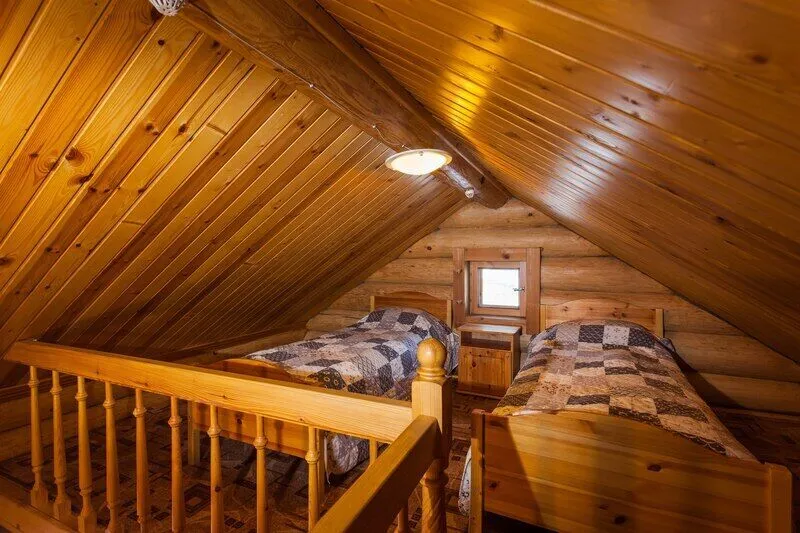 В коттеджах "Ладожский" №1-4 в одной из спальных комнат кровать двухъярусная, а в коттеджах №5-7 в обеих спальнях двуспальные кровати.
