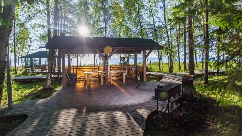Семейный отдыхДостоинстваХорошее расположение, рядом Приозерск. С веранды домика вид на залив, чисто, в домике есть все необходимое. Хорошо работает сантехника. Удобное место для приготовления шашлыка. Тихо. Доброжелательный персонал.