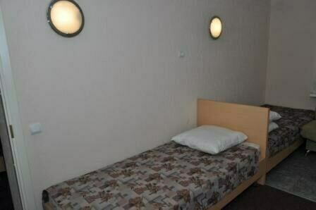 кровати, голый пол, телевизор стоит для красоты видимо. Не работает. Хотели сходить в бассейн, но забыли взять с собой шапочки резиновые. Здесь они оказались дороже, чем сам сеанс в бассейне. Сеанс в бассейне 45мин стоит 400р с человека, а шапочка 450р. Поэтому лучше не забывать брать с собой. Я из за этого расстроилась... Сам бассейн большой, чистый и говорят тёплый. -