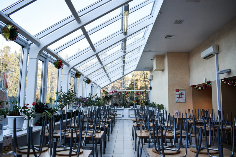 Уютная, просторная и светлая столовая всегда рада гостям! Повара готовят вкусную и полезную пищу и готовы скорректировать меню исходя из диеты или убеждений Гостей.