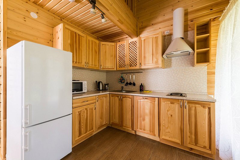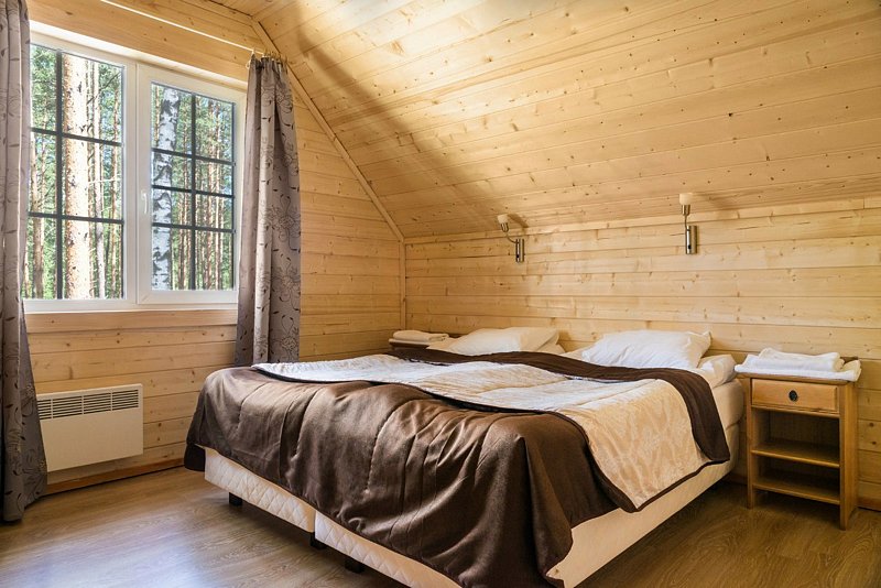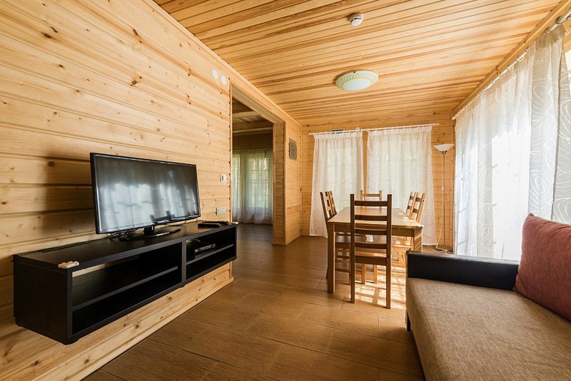 На территории базы в 13,5 га расположено всего 7 коттеджей: здесь вы отдохнете от машин, шума, суеты и соседей. Коттеджи находятся поодаль друг от друга. Только вы и природа: высокие макушки сосен, щебет птиц и свой пляж. Комфортные, полностью оснащенные современной техникой, с теплыми полами и чистой питьевой водой.