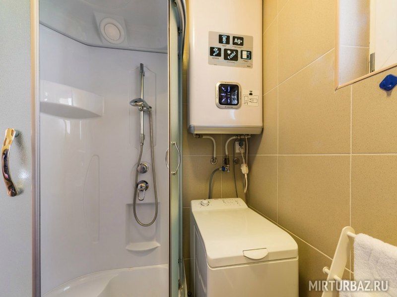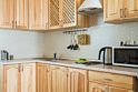 - Кухня (варочная поверхность на две конфорки, посудомоечная машина, электрический чайник, посуда, микроволновая печь, холодильник);