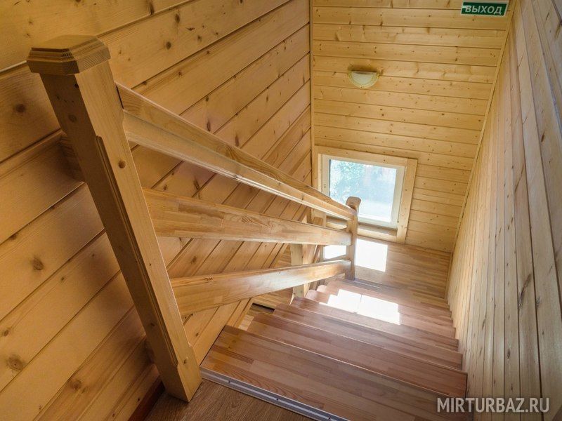 Двухэтажный коттедж из клееного бруса, рассчитанный на проживание 8 человек.