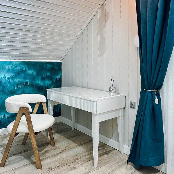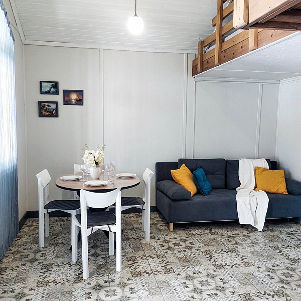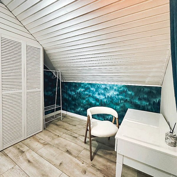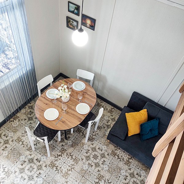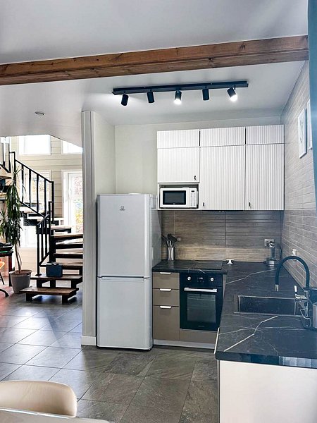 В доме общее пространство + мансардное спальное место , 2 комфортных дивана (2+2+2). Гостиная с диваном и большим телевизором. Кухня и обеденная зона со столом и сервировкой на 6 персон (посуда, столовые приборы и кухонная утварь). Санузел с душем, туалетом. Терраса с панорамными окнами, прихожая с тумбой для обуви и шкафом.