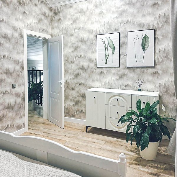 В доме 3 спальни, в спальнях двуспальные кровати + диван в гостинной (2+2+2+2). В каждой комнате место для хранения вещей, розетки у кроватей.