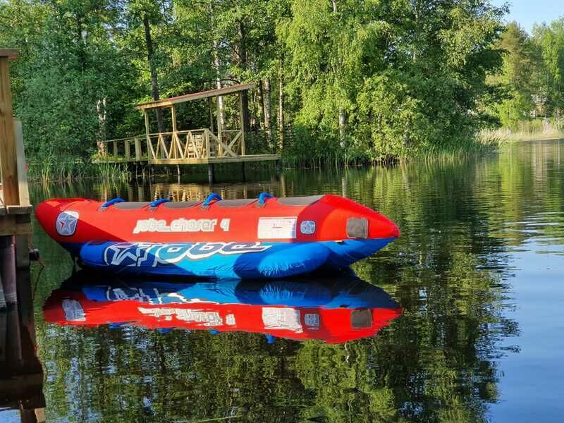 Три туалета позволяют не задумываться об утреннем моционе, большая финская сауна (входит в стоимость) и душевая придают домику ту притягательность, которая необходима, если на улице не очень хорошая погода.