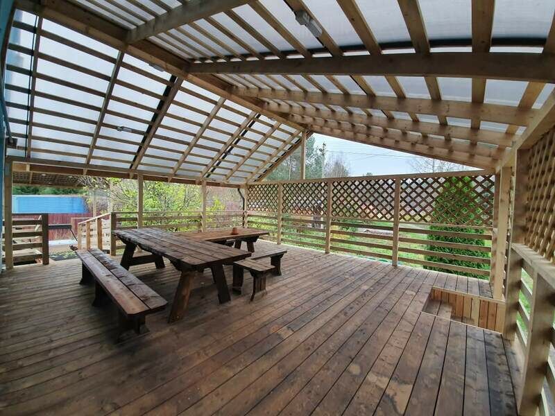 Открытая веранда площадью 50 кв. метров с мебелью.