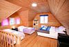 Второй этаж: одна общая спальня с 4 спальными местами. При необходимости односпальные кровати соединяются в одну двуспальную кровать.