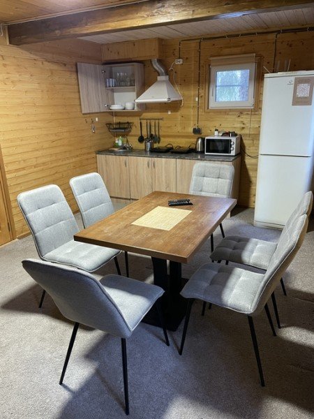 июль 2021 г.Отдых на выходныхХорошая база отдыха, красивые, просторные домики со спальнями на 2м этаже. Дома оборудованы всем необходимым, в том числе и посудой, в целом комфортабельные. На территории есть беседки с мангалами, волейбольная площадка. Администрация отзывчивая и внимательная.