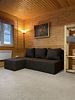 Первый этаж: кухня-гостиная, двуспальный диван, санузел. Санузел и коридор оснащены теплым полом.