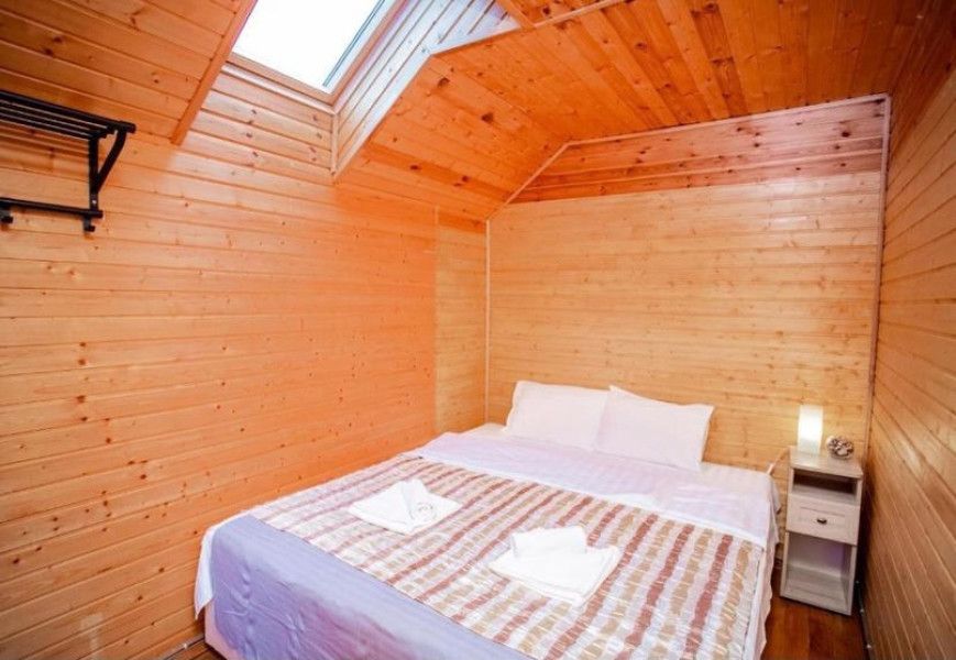 Бронировали домик за месяц, на сайте базы есть удобная он-лайн форма бронирования. При бронировании просили двуспальную кровать — по факту наше пожелание было учтено. На почту сразу пришел ваучер бронирования.