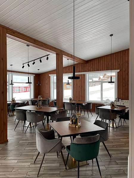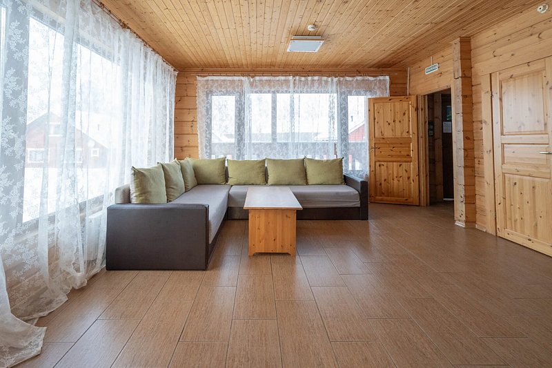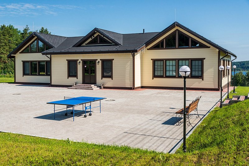 К услугам на территории кафе, детская комната, спортивная площадка, конференц-зал, прокат лодок, рыбалка, банный комплекс.