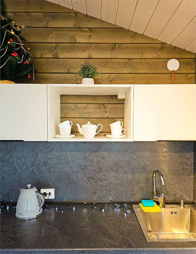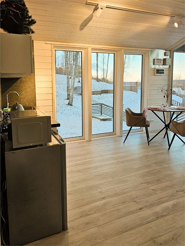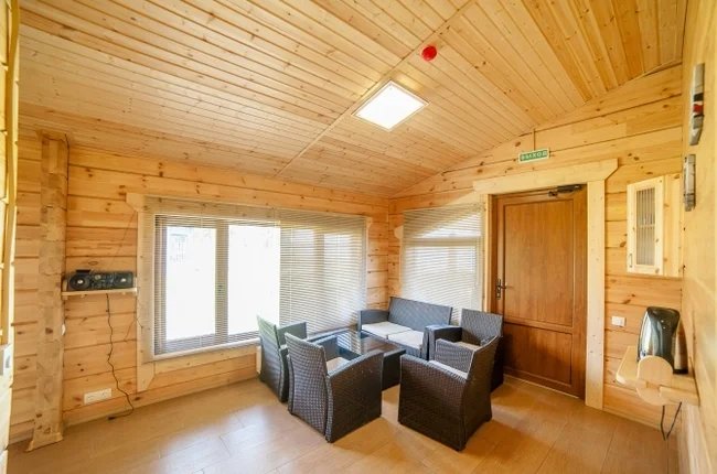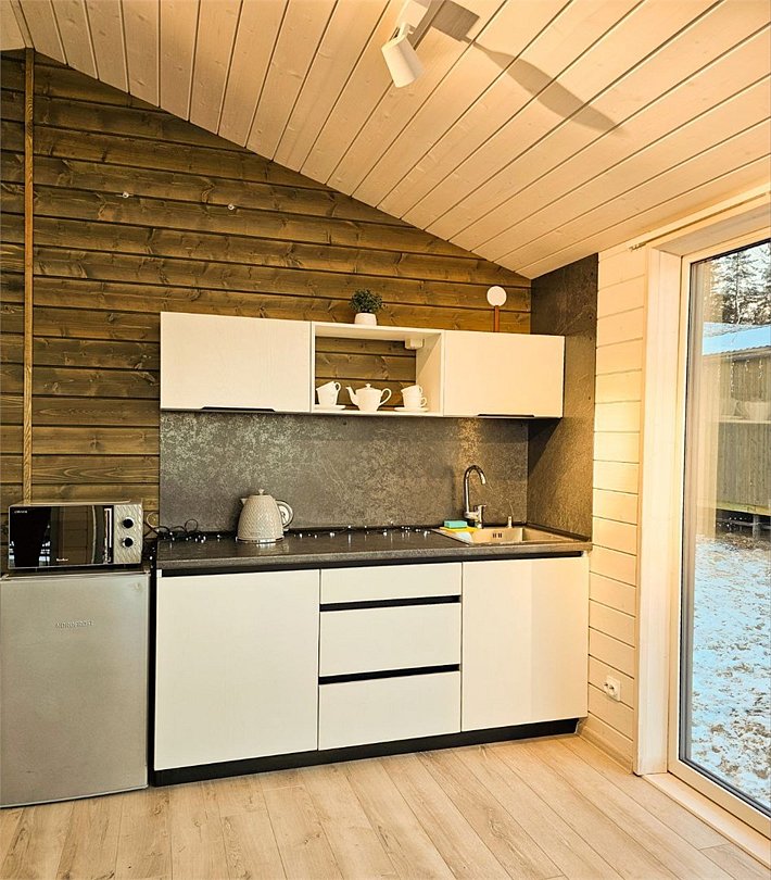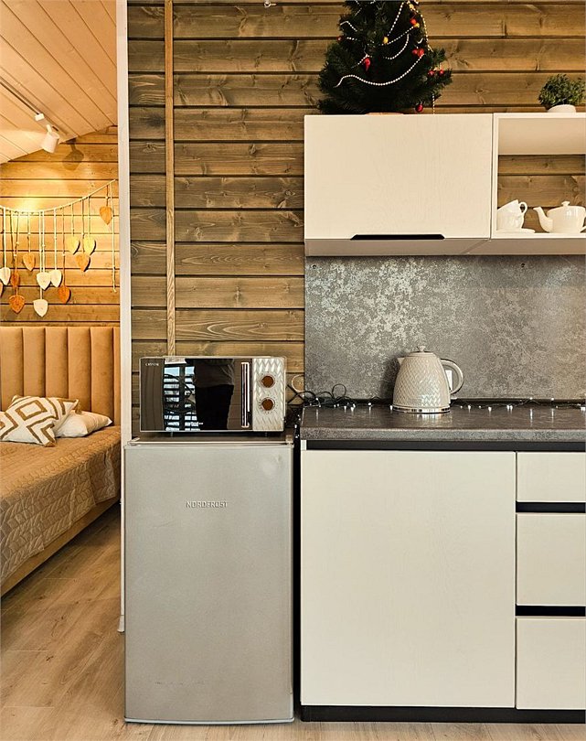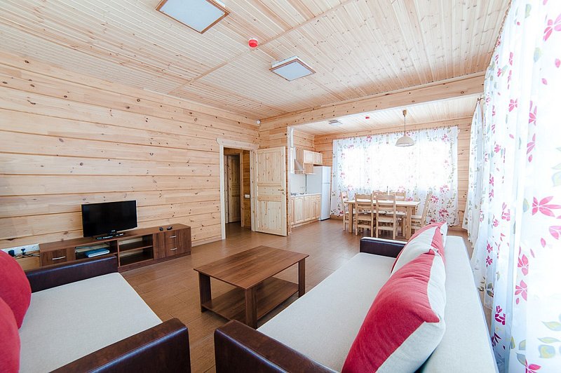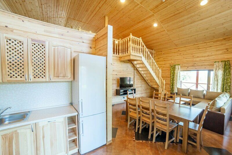 В каждом коттедже обустроена собственная кухня, чтобы гости имели возможность приготовить свои любимые блюда. А в некоторых коттеджах имеется сауна.