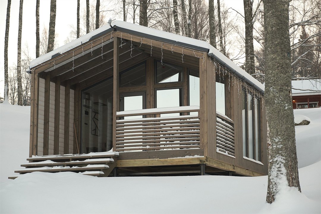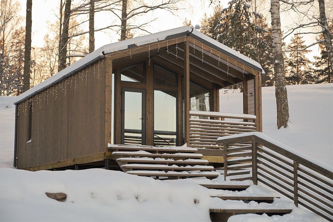 Также здесь вас ждет активный отдых круглый год. Летом — прогулки по лесу, сбор грибов и ягод, зимой — катание на лыжах и финских санках.