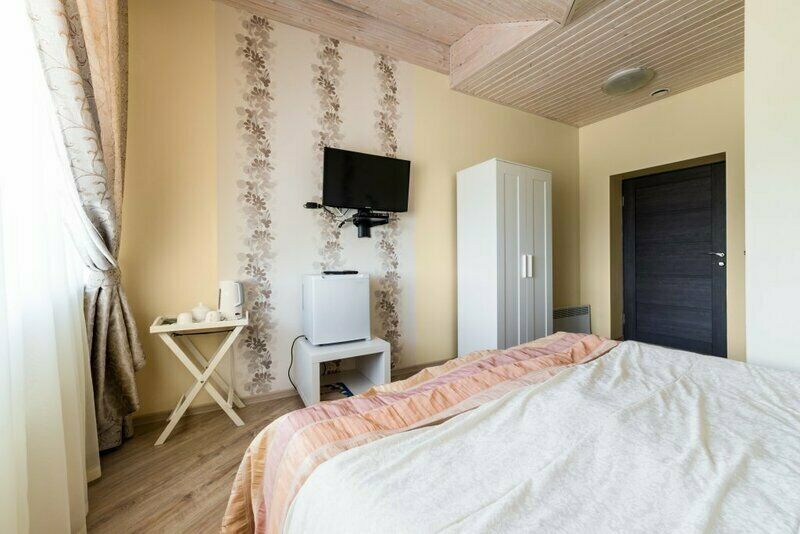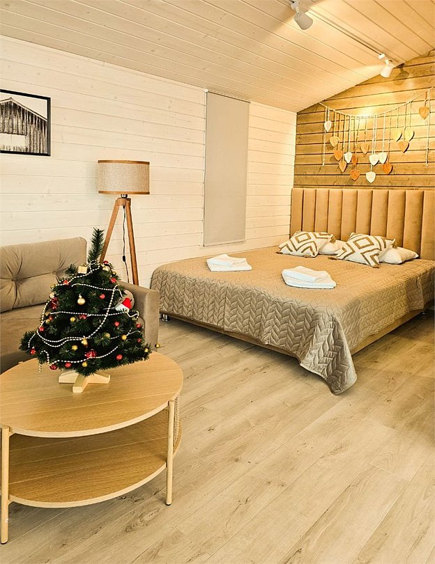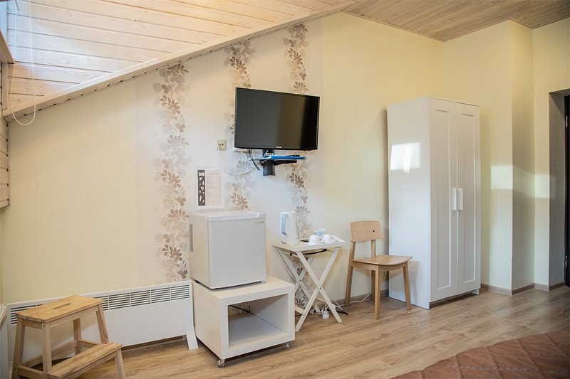 Гости могут расположиться в комфортабельных гостиничных номерах, а для большой компании имеются комфортабельные коттеджи на любой вкус. Каждый вариант проживания оснащен комфортным спальным местом, собственной ванной комнатой с туалетными принадлежностями и феном, телевизором, а также холодильником и чайником.