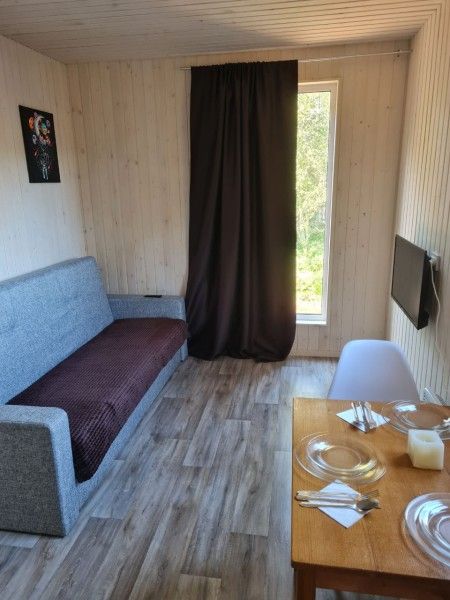 двуспальная кровать, двухъярусная кровать, кхонный уголок, электричество, в отдельном здании в общем пользовании с/у, душ.