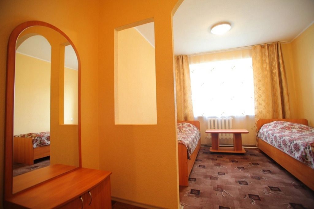 Одна комната, две односпальных кровати, душевая кабина, туалет.