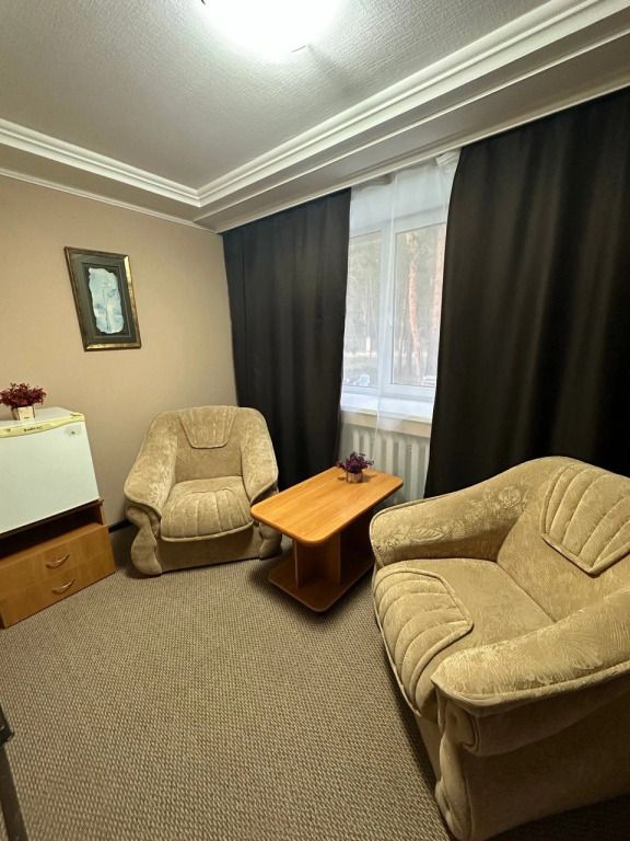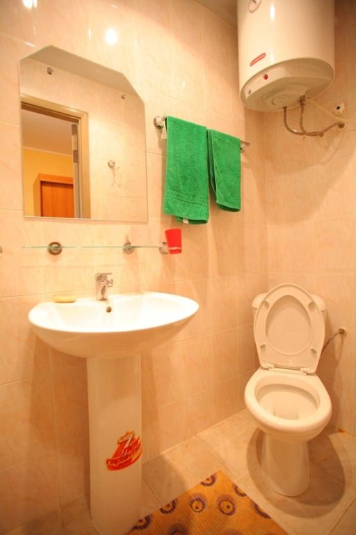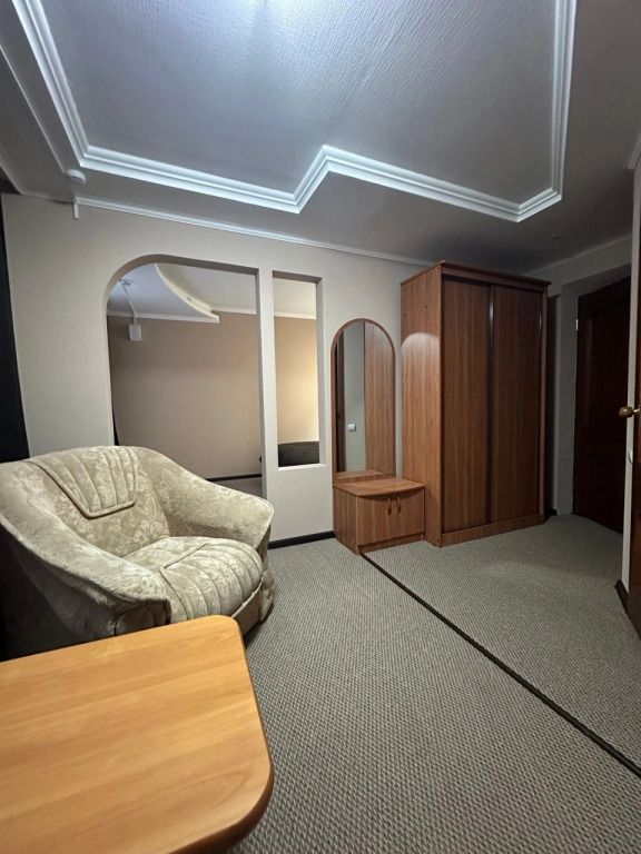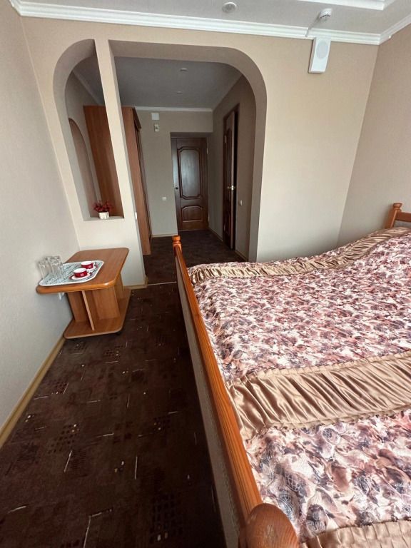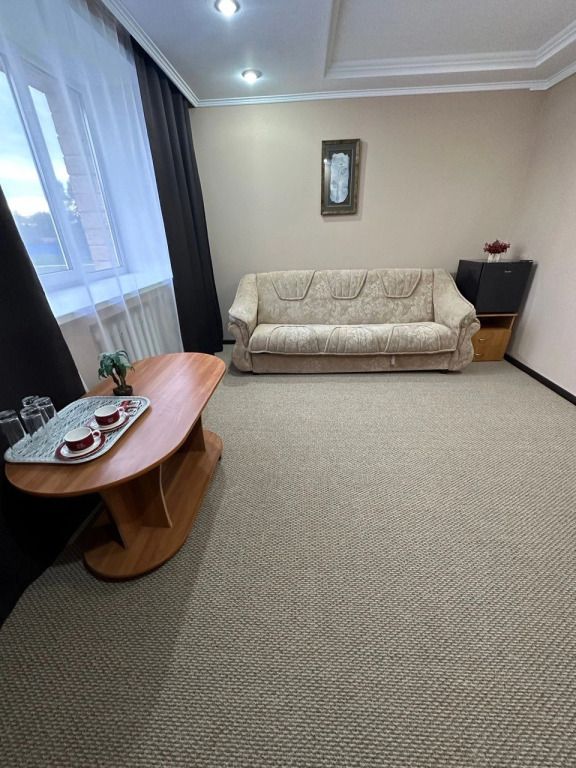 Две комнаты, двуспальная кровать, телевизор, холодильник, мягкая зона, душевая кабинка, туалет.