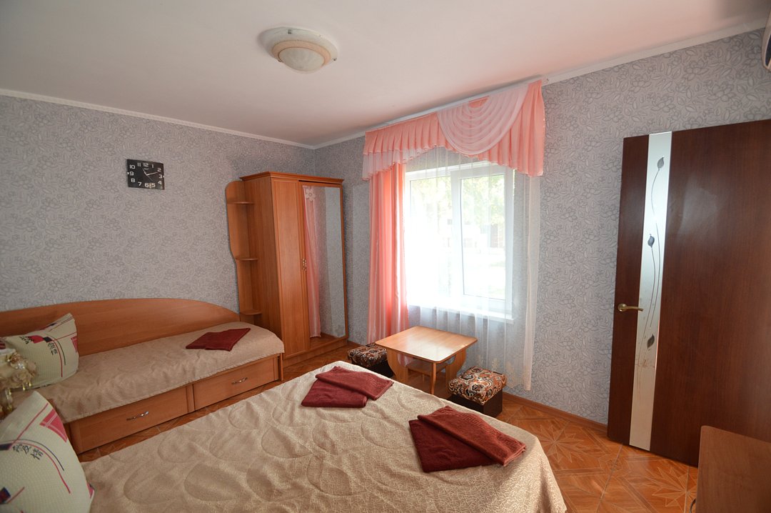 Горячая (бойлер) и холодная вода постоянно. Возможно размещение до 4 человек. От номера до моря — не более 200 метров по зеленой, тенистой аллее пансионата ВОЛГА.