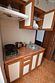Прихожая-кухня: оборудованная кухня, холодильник, электрочайник, микроволновка, обеденный стол.