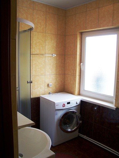 Санузел: душевая кабина, умывальник, туалет, биде, стиральная машина.