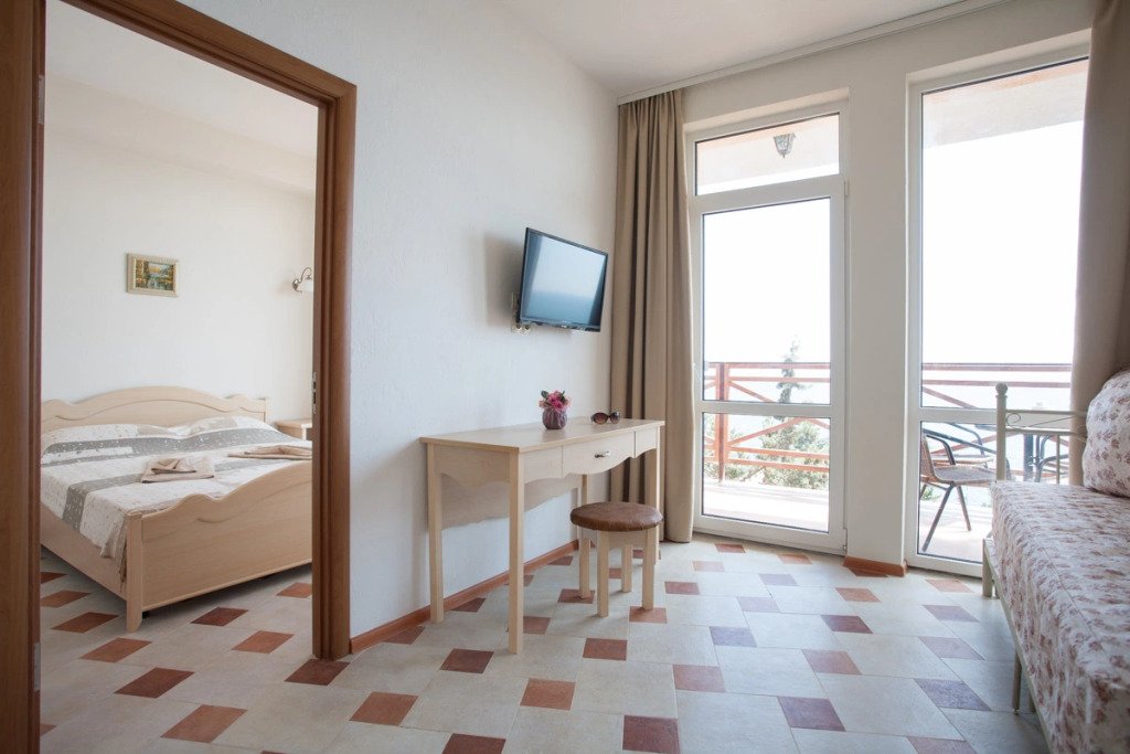 Четырёхместные апартаменты с 2 комнатами с балконом и с видом на море
