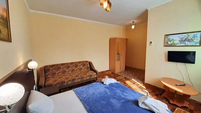 Доступный, но не менее комфортабельный однокомнатный номер со всеми удобствами внутри — кондиционер, горячий душ 24/7, туалет, холодильник, телевизор, фен.