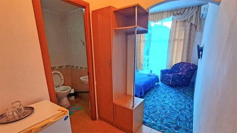 Самый доступный, но не менее комфортабельный однокомнатный номер со всеми удобствами внутри – кондиционер, горячий душ 24/7, туалет, холодильник, телевизор, фен.