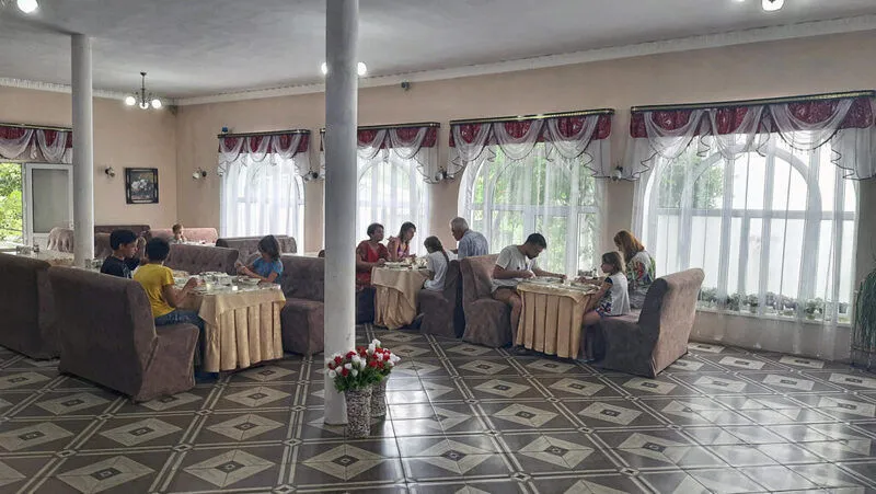 На территории организовано домашнее трёхразовое питание по типу «шведский стол» — готовят блюда русской, украинской, армянской и европейской кухни.