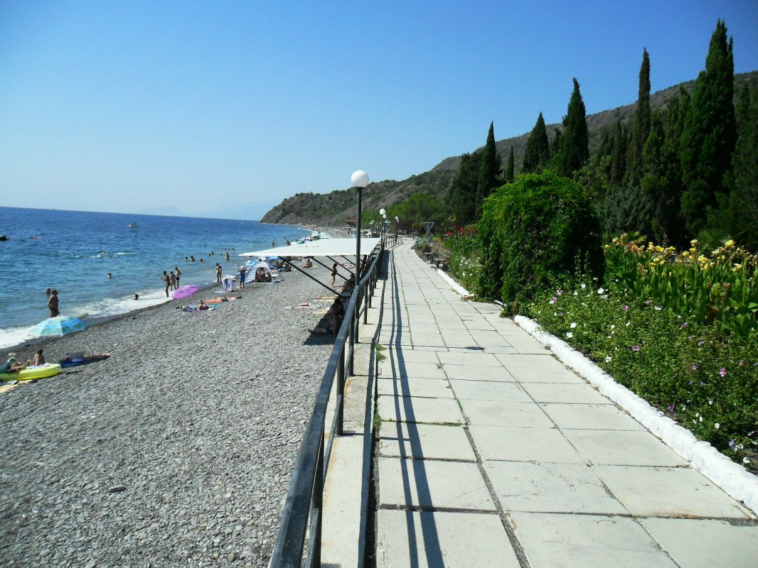 Семейный отдыхДостоинстваПрям наследие советской архитектуры. Комплекс находится у живописной горы. К персоналу претензий нет. Чистый галечный пляж с платными лежаками. Классное море.
