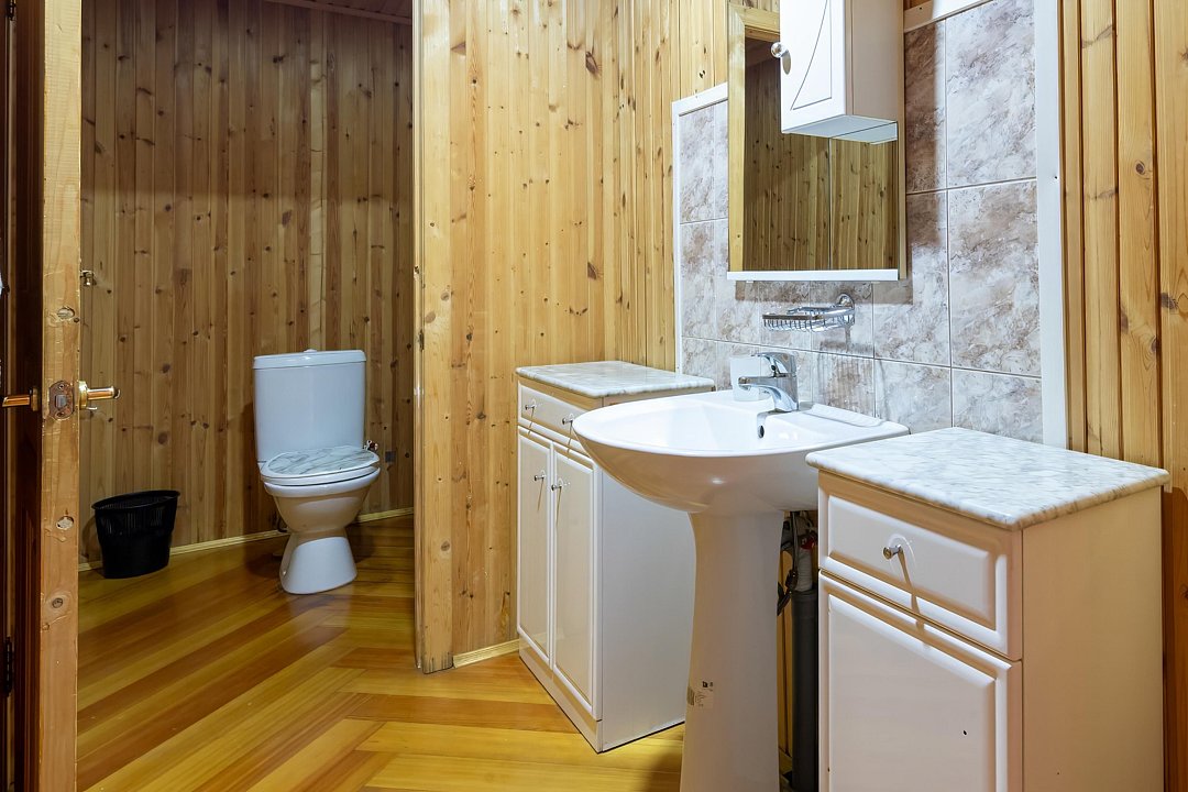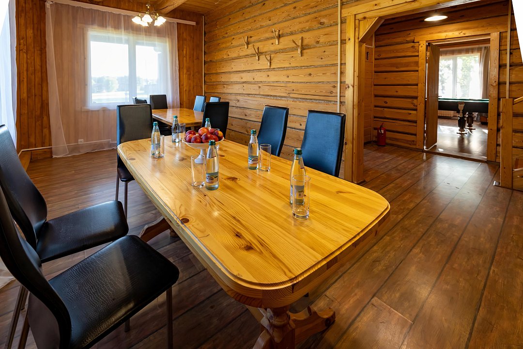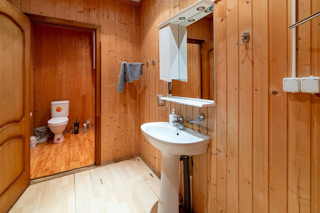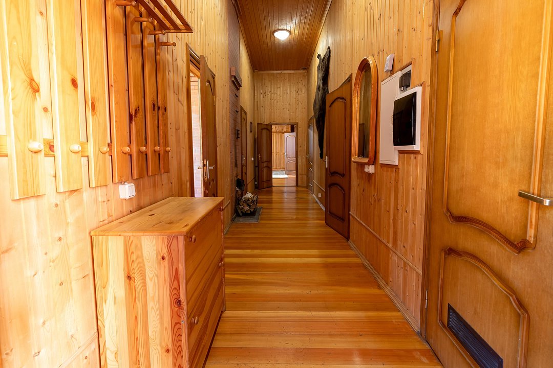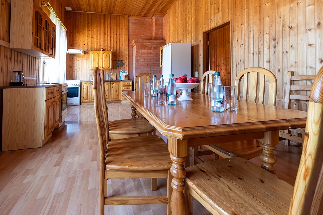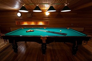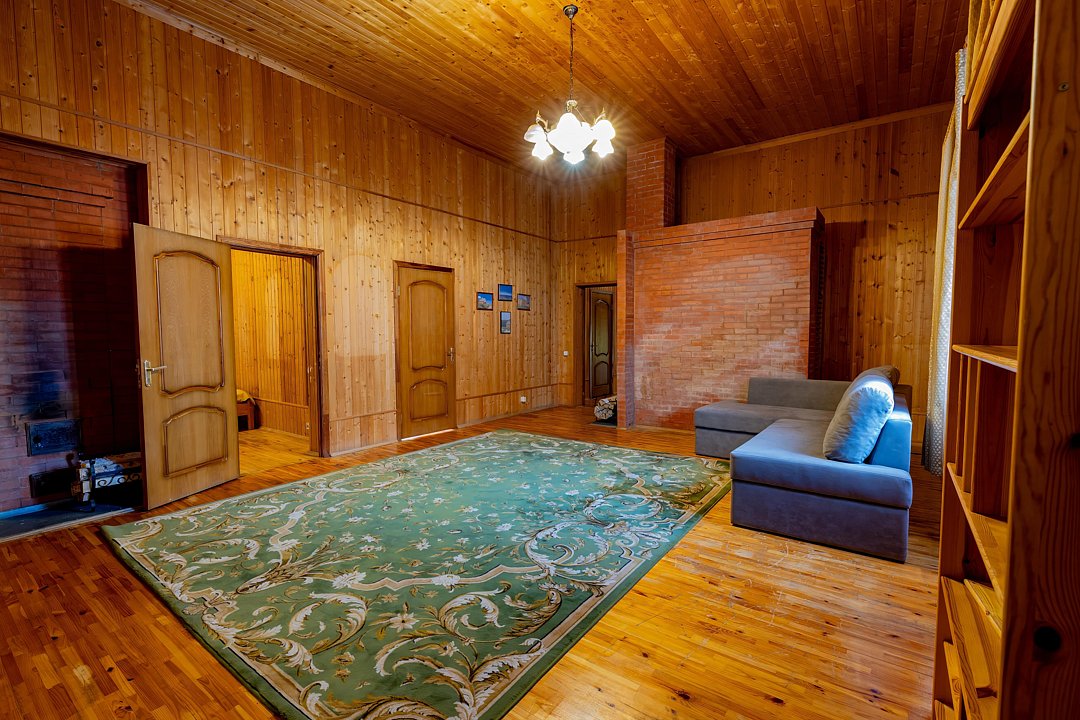 В распоряжении гостей 5 спален, 5 санузлов, большая гостиная комната, столовая зона, собственная баня на дровах, бильярд, балкон, просторная веранда и вся территория, на которой расположен коттедж.
