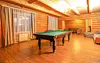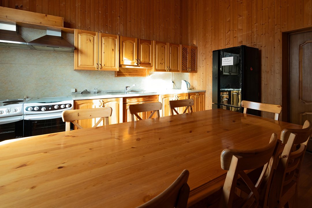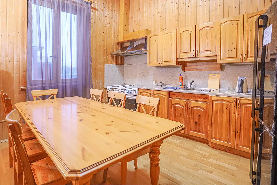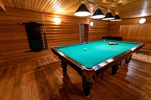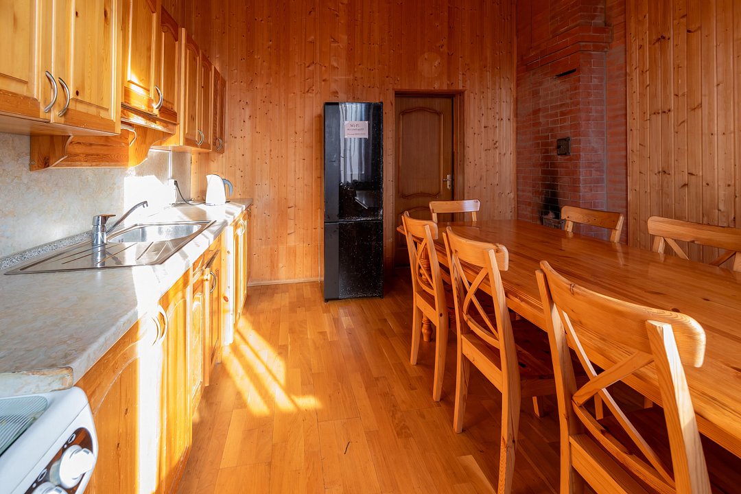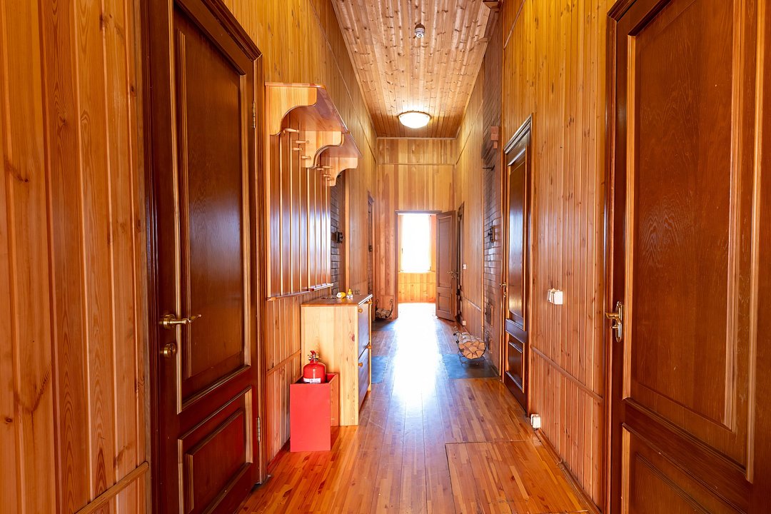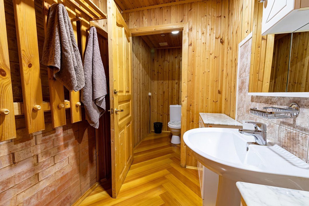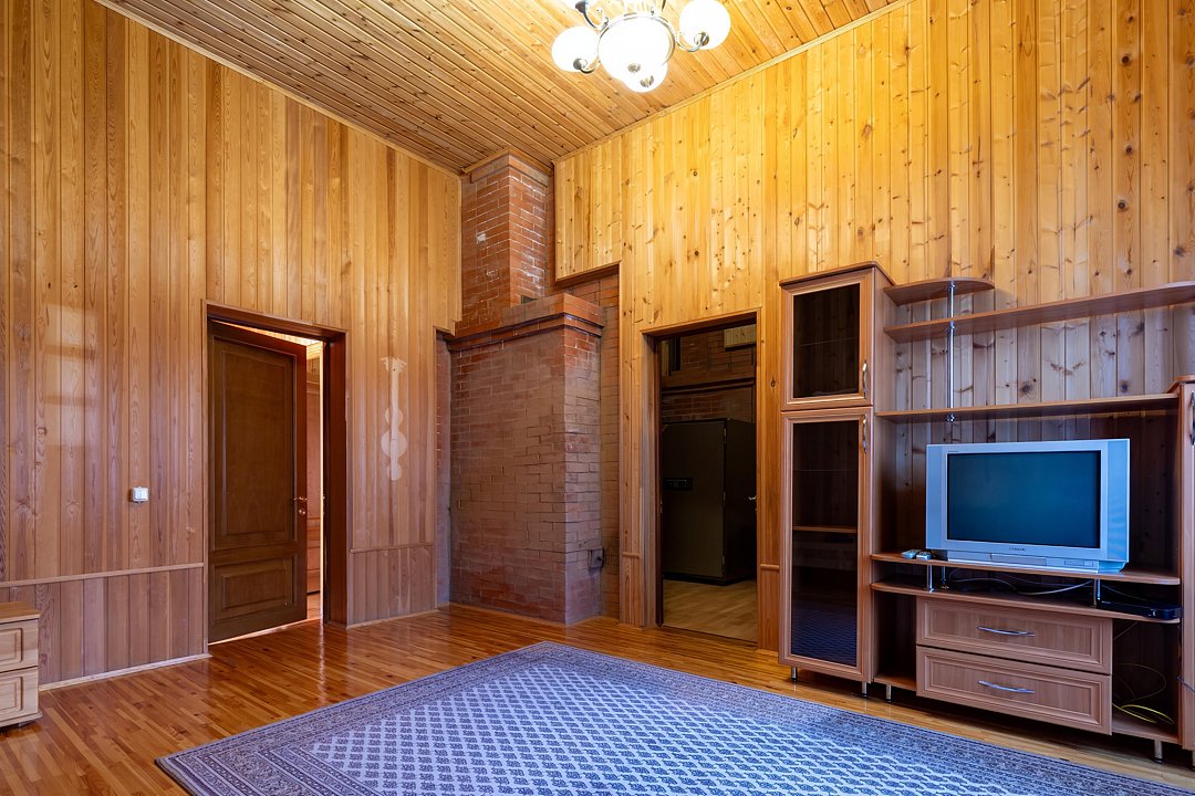 В распоряжении гостей 5 спален, 5 санузлов, большая гостиная комната, столовая зона, собственная баня на дровах, бильярд, балкон, просторная веранда и вся территория, на которой расположен коттедж.