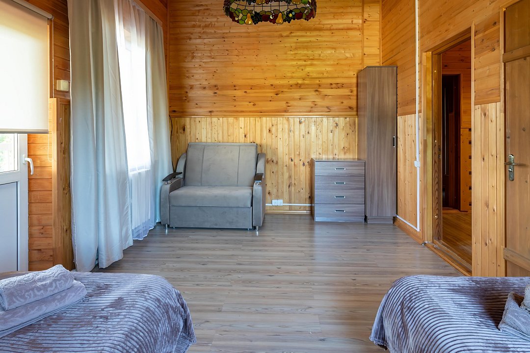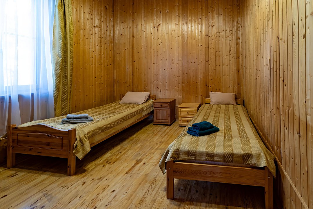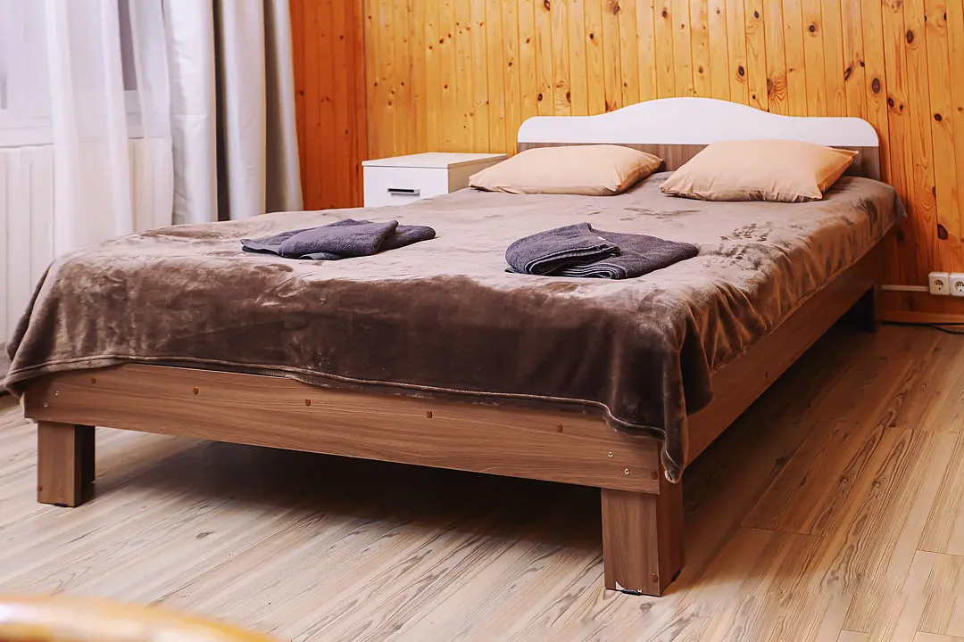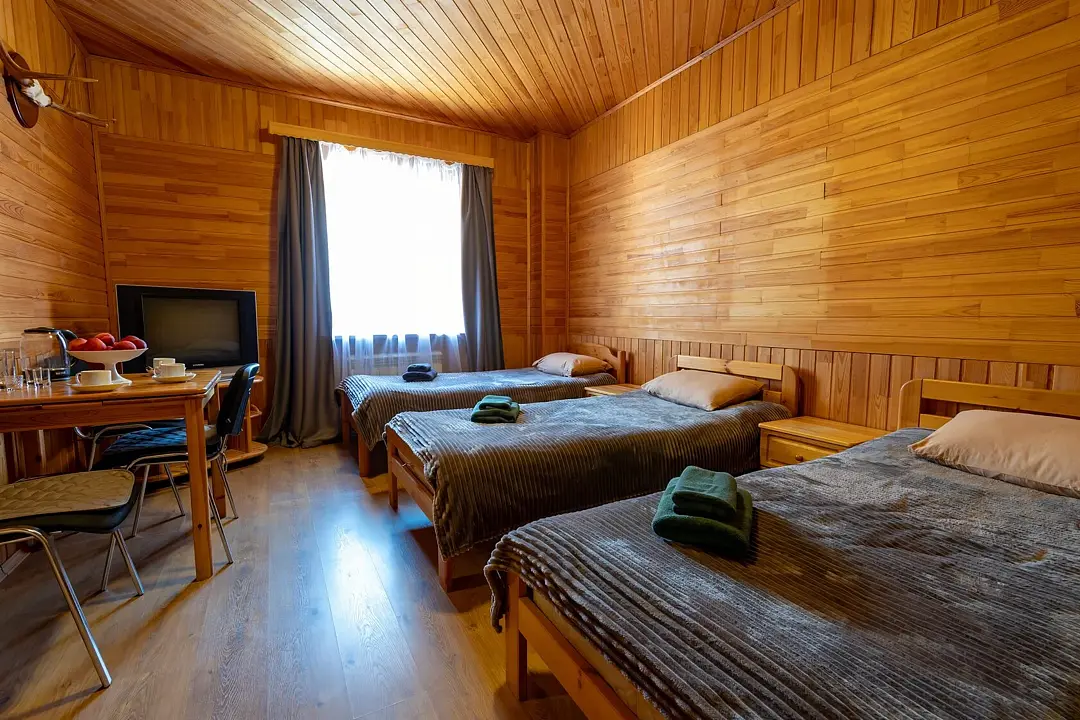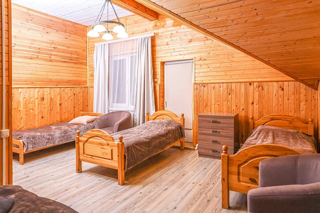 Вариант размещения идеально подходит для бюджетного размещения компании друзей, которым в первую очередь необходим комфортный сон за умеренную плату.
