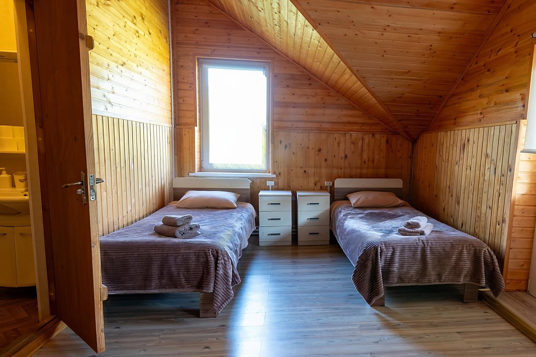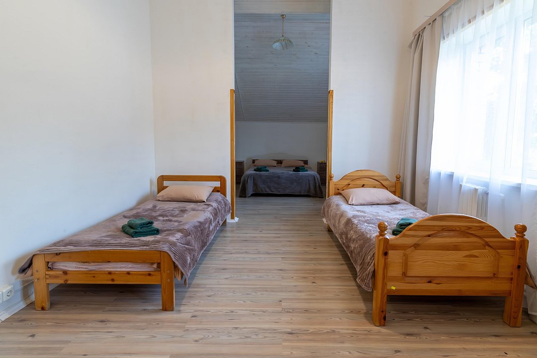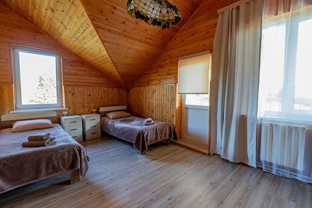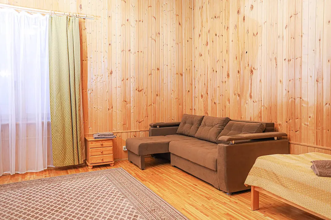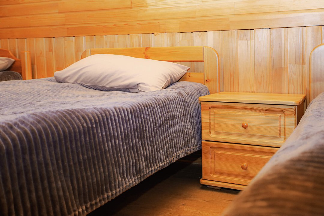 Вариант размещения идеально подходит для бюджетного размещения компании друзей, которым в первую очередь необходим комфортный сон за умеренную плату.