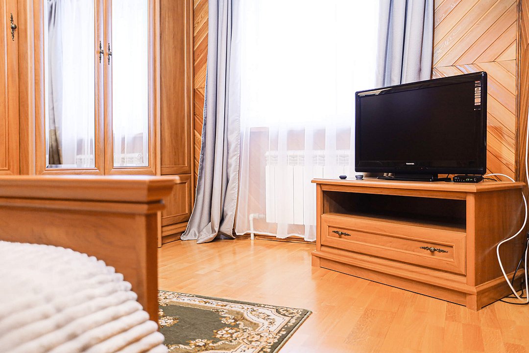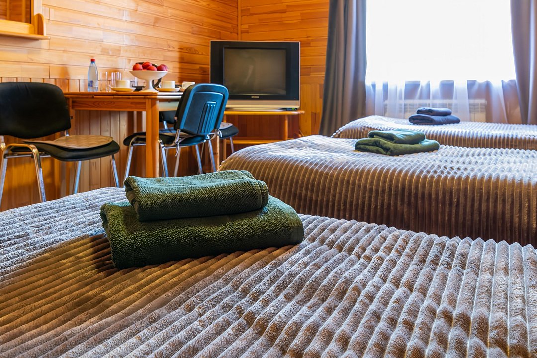 Удобные кровати с ортопедическими матрасами, прикроватные тумбочки, собственный полноценный санузел, телевизор, холодильник.