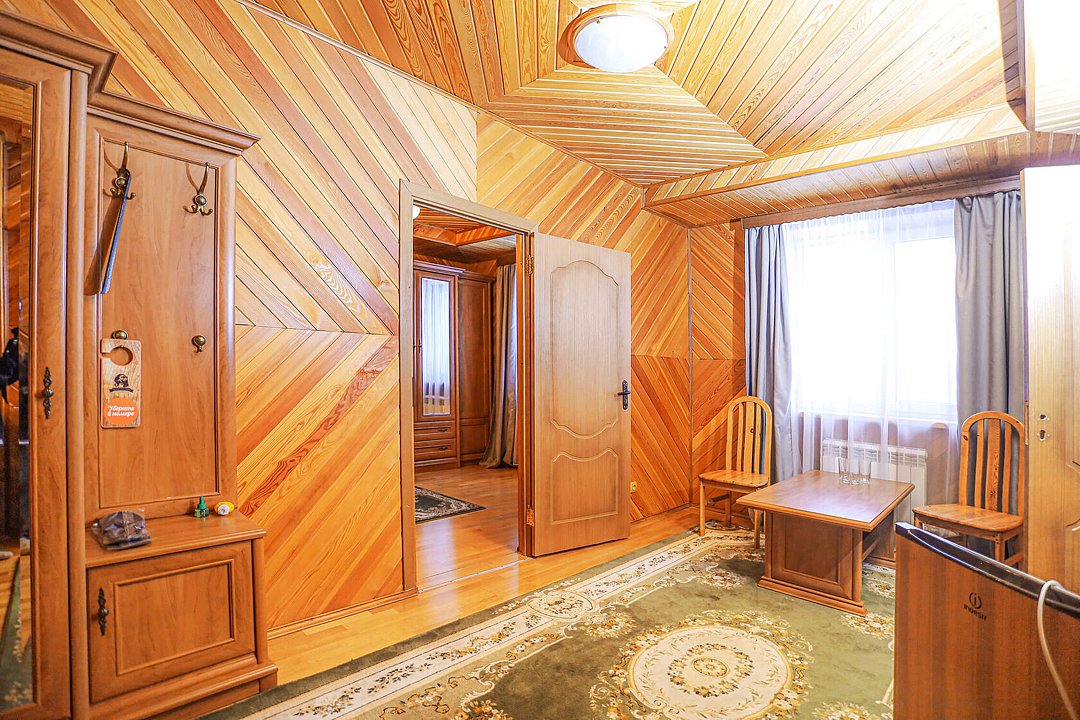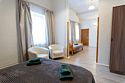 Просторный двухкомнатный номер повышенной категории с увеличенной площадью. Один из самых комфортных вариантов размещения в отеле. В гостиной и спальне созданы все условия для пребывания 2 гостей. Некоторые номера оборудованы дзакузи. Удобные кровати с ортопедическими матрасами, прикроватные тумбочки, собственный полноценный санузел, платяной шкаф, телевизор, холодильник.