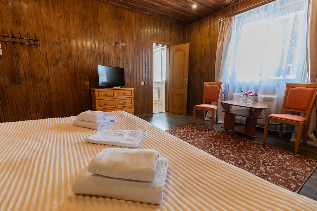 Эксклюзивный уютный 2-местный номер с увеличенной площадью и собственной сауной. Идеальный вариант для гостей, предпочитающих приватный отдых с дополнительным сервисом.