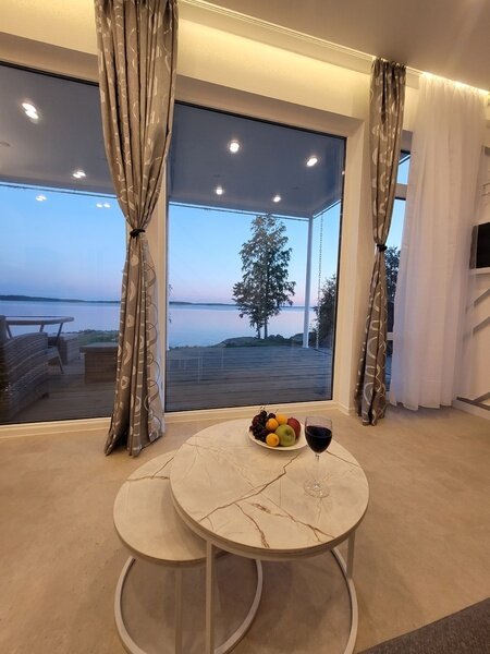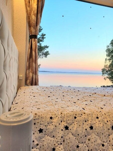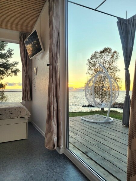 Новый глэмпинг 2022 года постройки на самом берегу озера Сямозеро, великолепный вид на озеро. Рассчитан на 2 взрослых + 1 дополнительное место для ребенка.