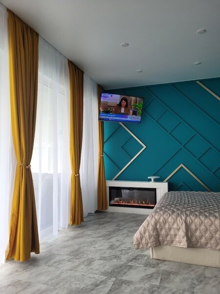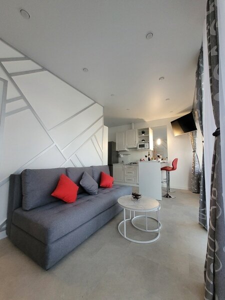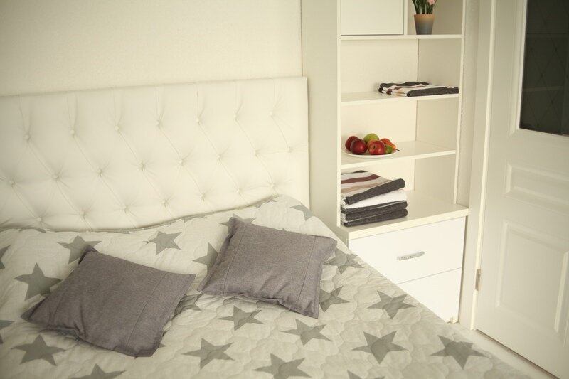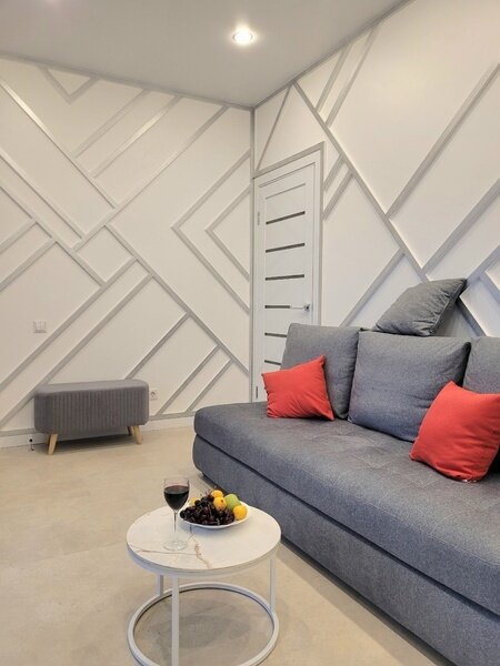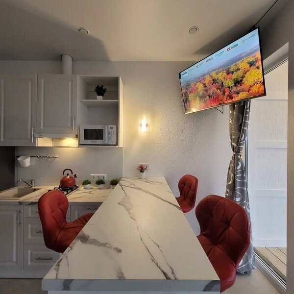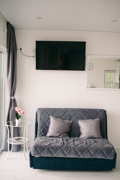 - 3 комната гостинная: встроенная кухня + двухспальный диван;