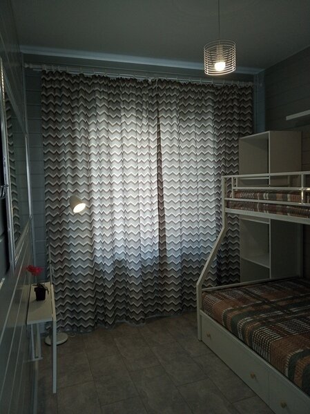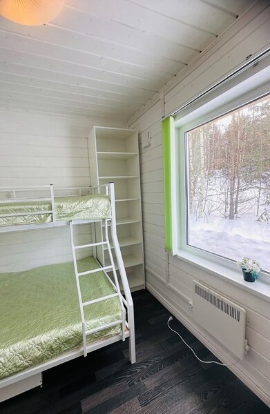 - 1 комната: двухъярусная кровать с двухспальным местом внизу;