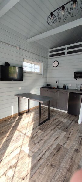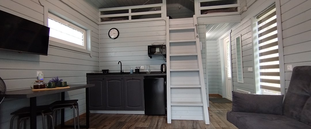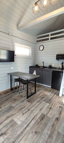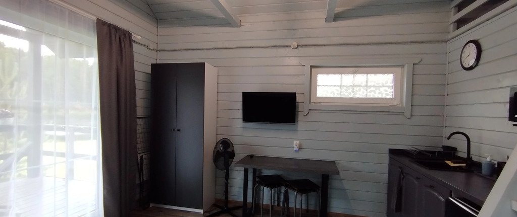 В каждом домике вас ждёт всё для комфортного проживания: – душевая и фен – оборудованная кухня – постельное бельё, полотенца и мягкие пледы для вечернего чаепития на свежем воздухе – терраса с видом на реку — просто укутайтесь и наслаждайтесь моментом.